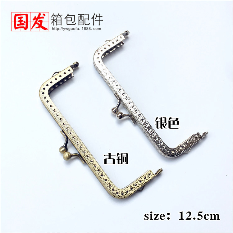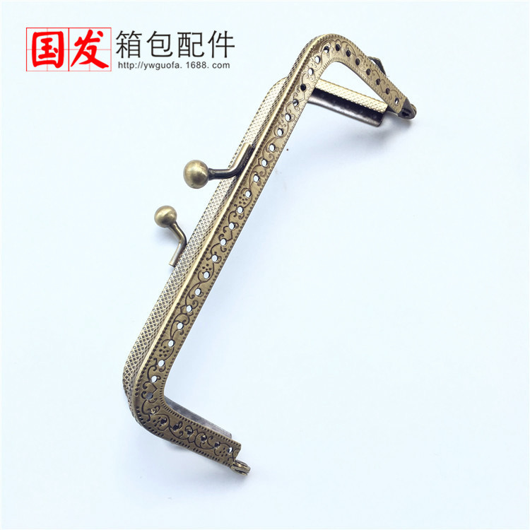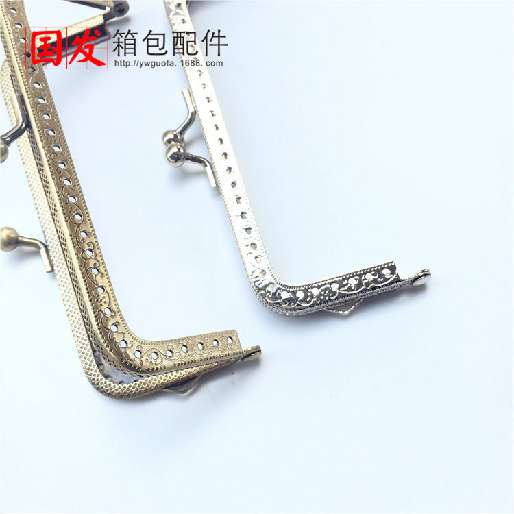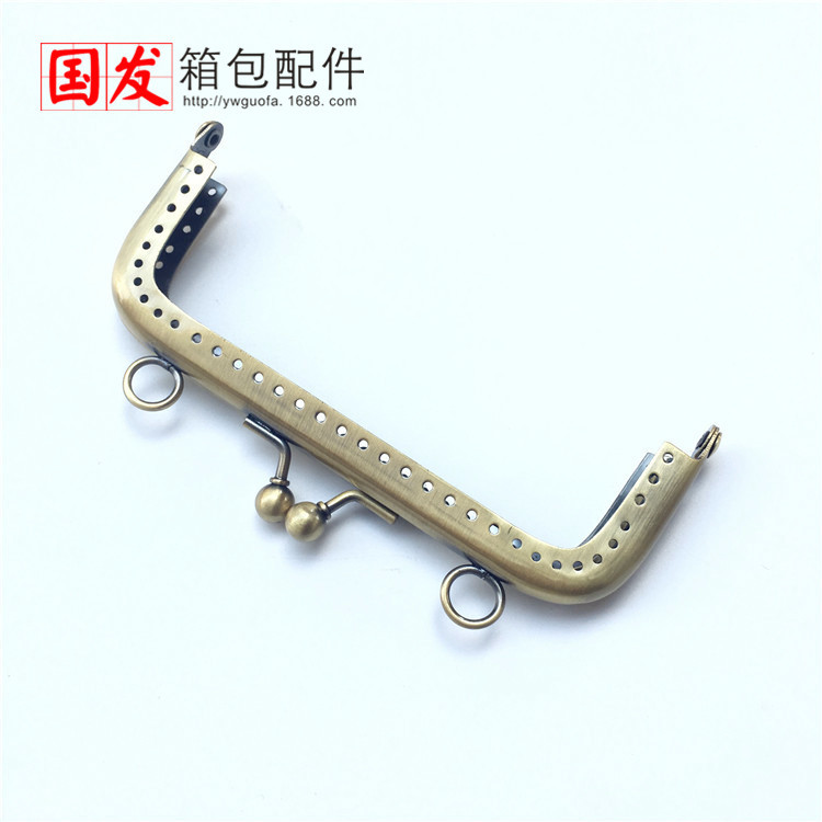 Sin stock: 25CM cuadrado emblema cabeza de bola de oro orejas de bronce bisagras de bolso bisagras