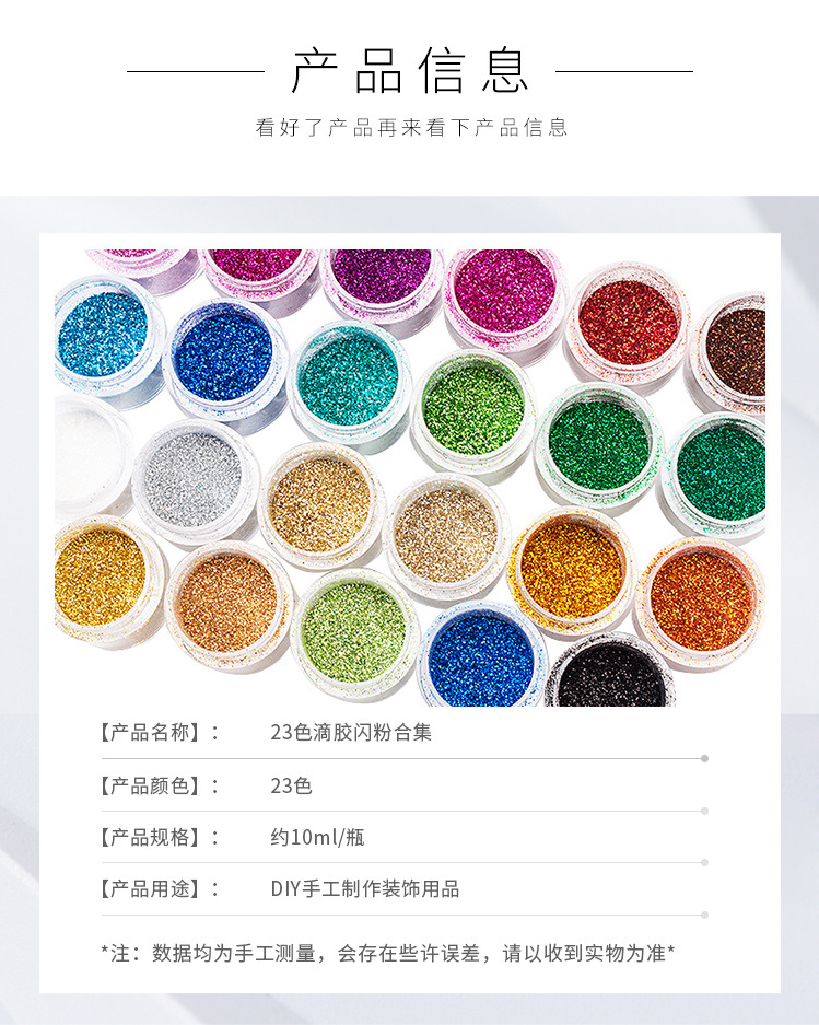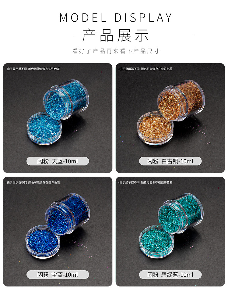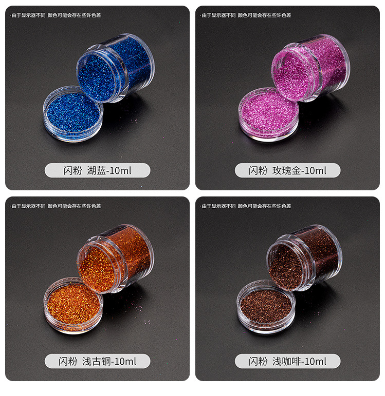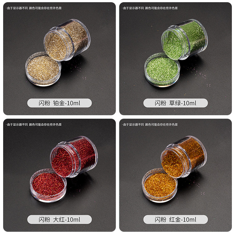 | Color | 圣诞系列闪粉1号 10ml,圣诞系列闪粉2号 10ml,闪粉10ml 大红,闪粉10ml 湖绿,闪粉10ml 白色,闪粉10ml 金色,闪粉10ml 银色,闪粉10ml 宝蓝,闪粉10ml 湖蓝,闪粉10ml 黑色,闪粉10ml 浅金,闪粉10ml 白古铜,闪粉10ml 铂金,闪粉10ml 天蓝,闪粉10ml 红金,闪粉10ml 草绿,闪粉10ml 浅古铜,闪粉10ml 孔雀绿,闪粉10ml 浅咖啡,闪粉10ml 绿色,闪粉10ml 香槟紫,闪粉10ml 紫色,闪粉10ml 玫红,闪粉10ml 玫瑰金,闪粉10ml22款集合,梦幻初夏闪粉 1# 荧黄,梦幻初夏闪粉 2#圣诞绿,梦幻初夏闪粉 3#西瓜红,梦幻初夏闪粉 4#橙色,梦幻初夏闪粉 5#紫色,梦幻初夏闪粉 6#深蓝,梦幻初夏闪粉 7#浅蓝,梦幻初夏闪粉 8#天蓝,梦幻初夏闪粉 9#嫩绿,梦幻初夏闪粉 10# 紫红,梦幻初夏闪粉 11#粉红,梦幻初夏闪粉 12#玫红,梦幻初夏闪粉12色合集,镭射混合闪粉 镭射碧绿蓝,镭射混合闪粉 镭射蓝,镭射混合闪粉 镭射宝蓝,镭射混合闪粉 镭射暗粉红,镭射混合闪粉 镭射紫,镭射混合闪粉 镭射浅绿,镭射混合闪粉 镭射深桃红,镭射混合闪粉 镭射深蓝,镭射混合闪粉 镭射绿,镭射混合闪粉 镭射红金,镭射混合闪粉 镭射黑,镭射混合闪粉 镭射红,镭射混合闪粉 镭射咖啡,镭射混合闪粉 镭射浅紫,镭射混合闪粉 镭射银,镭射混合闪粉 镭射金,镭射混合闪粉 镭射橙,镭射混合闪粉 幻彩红光白,镭射混合闪粉 幻彩蓝光白,镭射混合闪粉 19色合集,细闪粉 镭射金,细闪粉 镭射暗粉红,细闪粉 镭射宝蓝,细闪粉 镭射咖啡,细闪粉 镭射黑,细闪粉 镭射红,细闪粉 镭射玫红,细闪粉 镭射紫,细闪粉 镭射蓝,细闪粉 镭射银,细闪粉 镭射深蓝,细闪粉 镭射绿,30ml镭射细闪粉13色,银河金钻粉1号 10ml,银河金钻粉2号 10ml,银河金钻粉3号 10ml,银河金钻粉4号 10ml,银河金钻粉5号 10ml,银河金钻粉6号 10ml,银河金钻粉7号 10ml,银河金钻粉8号 10ml,银河金钻粉9号 10ml,银河金钻粉10号 10ml,银河金钻粉11号 10ml,银河金钻粉12号 10ml,银河金钻粉12色合集,渐变闪粉金钻版1号 10ml,渐变闪粉金钻版2号 10ml,渐变闪粉金钻版3号 10ml,渐变闪粉金钻版4号 10ml,渐变闪粉金钻版5号 10ml,渐变闪粉金钻版6号 10ml,渐变闪粉金钻版7号 10ml,渐变闪粉金钻版8号 10ml,渐变闪粉金钻版9号 10ml,渐变闪粉金钻版10号 10ml,渐变闪粉10色,妖精之瞳-浅紫 20ml,妖精之瞳-星雨 20ml,妖精之瞳-水青 20ml,妖精之瞳-流光 20ml,妖精之瞳-香槟 20ml,妖精之瞳-迷梦 20ml,妖精之瞳-幻金 20ml,妖精之瞳-晶白 20ml,8色妖精之瞳闪粉(20ml),梦幻闪粉-眉间雪 30ml,梦幻闪粉-大约在冬季 30ml,梦幻闪粉-月溅星河 30ml,梦幻闪粉-满目星辰 30ml,梦幻闪粉-冰雪扶光 30ml,梦幻闪粉-水云间 30ml,梦幻闪粉-甜蜜蜜 30ml,梦幻闪粉-小幸运 30ml,梦幻闪粉-难逃月色 30ml,梦幻闪粉-秋山信月归 30ml,梦幻闪粉-何处问 30ml,梦幻闪粉-三千繁华梦 30ml,梦幻闪粉-樱花满开 30ml,梦幻闪粉-几度秋 30ml,14色梦幻闪粉(30ml),1号白冰透雪混合4瓶一套,2号香槟金混合4瓶一套,3号圣诞彩混合4瓶一套,4号深海绿混合4瓶一套,5号樱桃蜜饯混合4瓶一套,6号玛瑙金混合4瓶一套,7号水晶粉紫4瓶一套,8号孔雀绿4瓶一套,9号万圣紫5瓶一套,10号纽约咖5瓶一套,11号蜜桔红5瓶一套,12号淡冰蓝4瓶一套,13号圣诞彩4瓶一套,14号粉蜜彩5瓶一套,15号古铜金4瓶一套,16号酱咖啡4瓶一套,17号海沙粉红4瓶一套,18号粉玫彩4瓶一套,19号紫粉果4瓶一套,20号薄荷绿汁4瓶一套,21号粉蜜红5瓶一套,22号牡丹玫4瓶一套,23号柠黄彩4瓶一套,24号香槟银5瓶一套 |