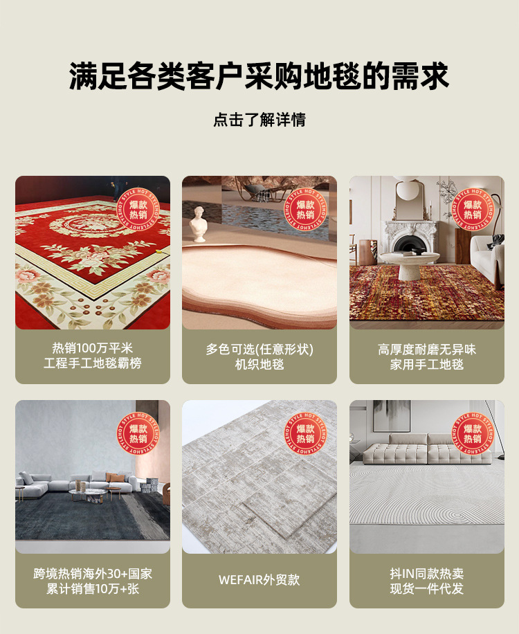 Venta directa de la fábrica de Dishi Mei: venta al por mayor de alfombras tejidas a mano para el hogar, uso comercial, salas de estar, dormitorios, salas de billar y hoteles.