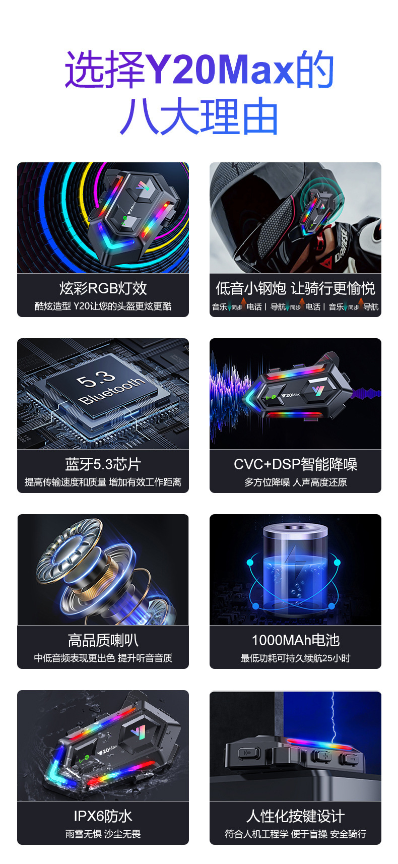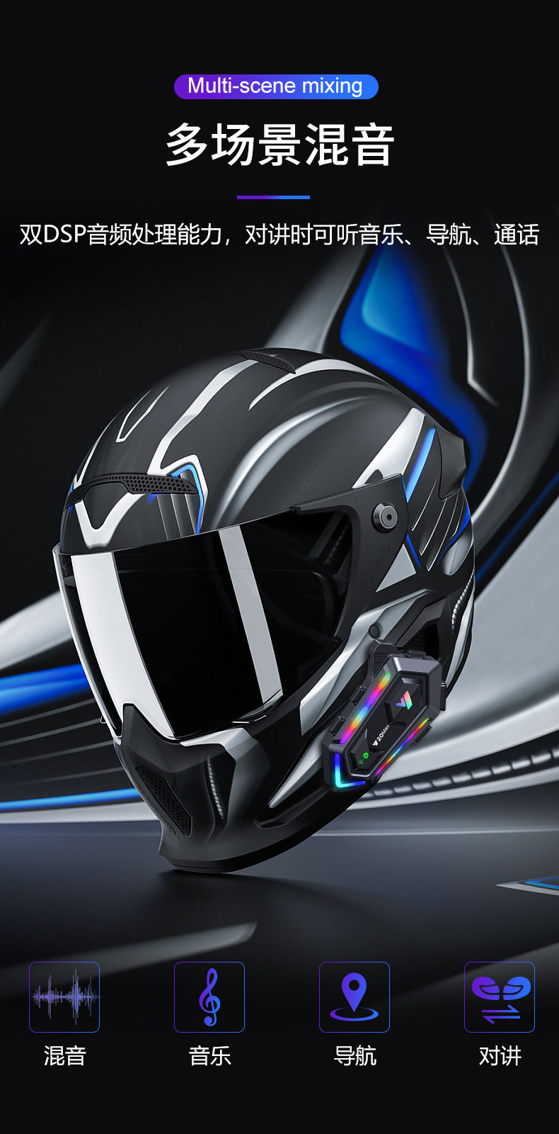 | Función | Soporte Bluetooth, impermeable, polvo, intercomunicación, reproducción de música, pantalla de carga, función de llamada |