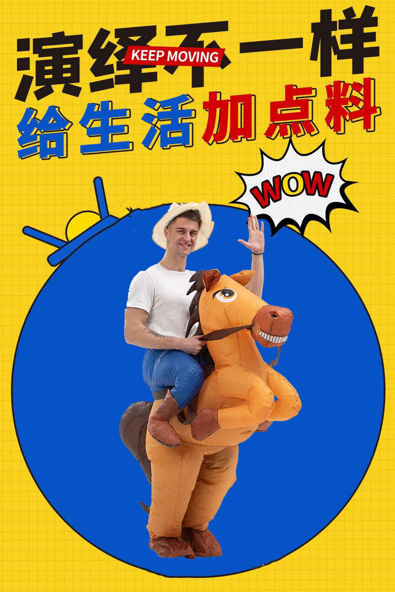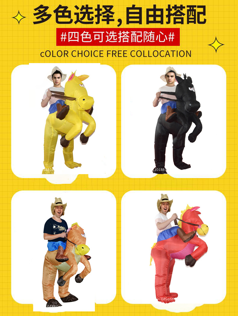 | Colores | FZ1766 Caballo de cola grande (155-190cm),FZ1543 Caballo inflable marrón (155-190cm),FZ1543C Caballo inflable negro (155-190cm),FZ1543A Caballo inflable rojo (155-190cm),FZ1543B traje inflable amarillo |