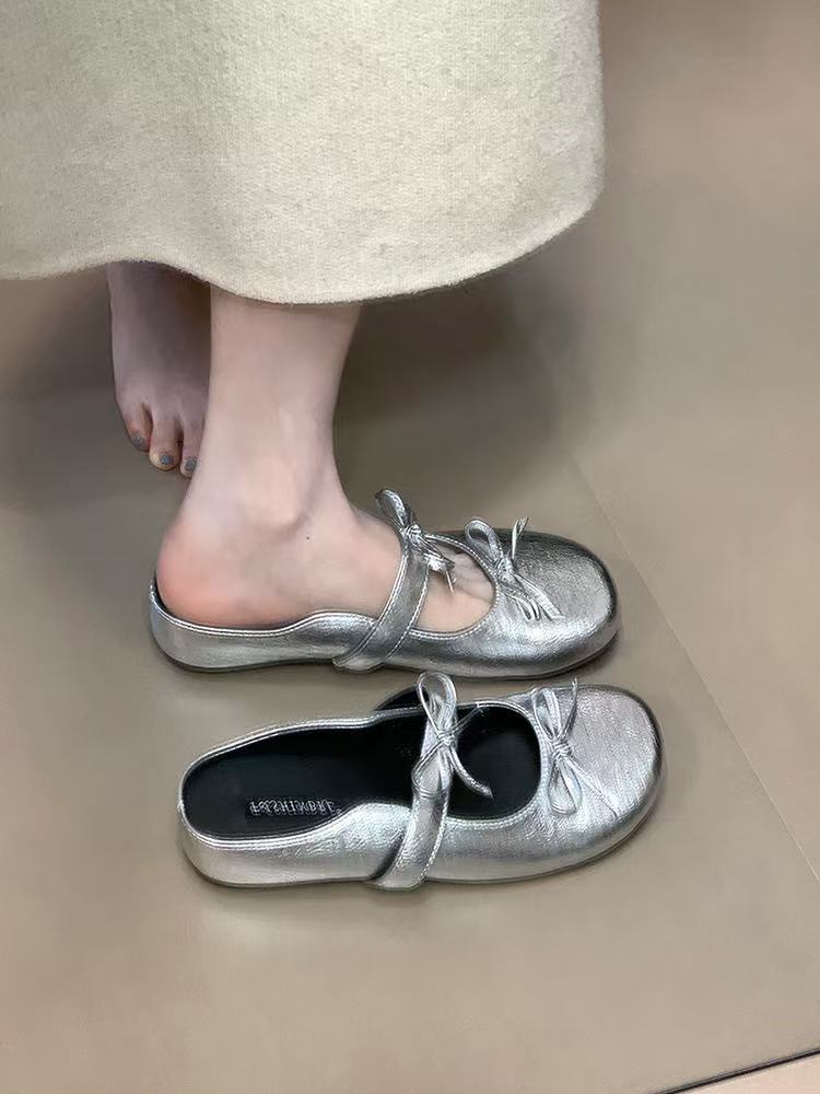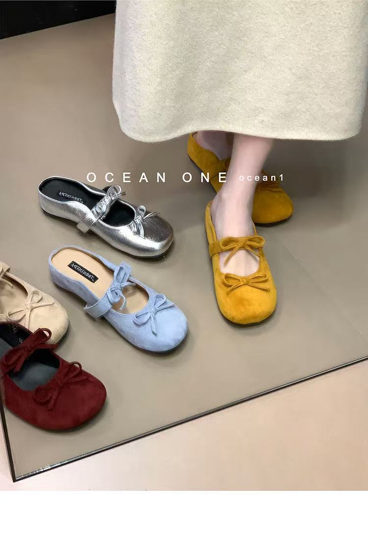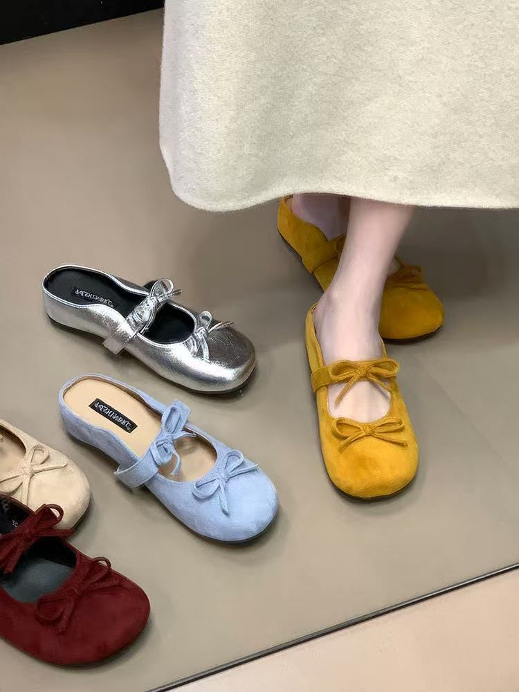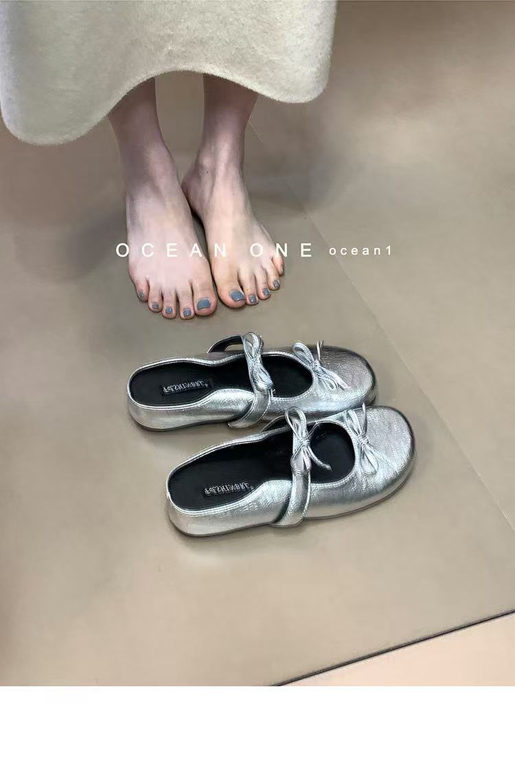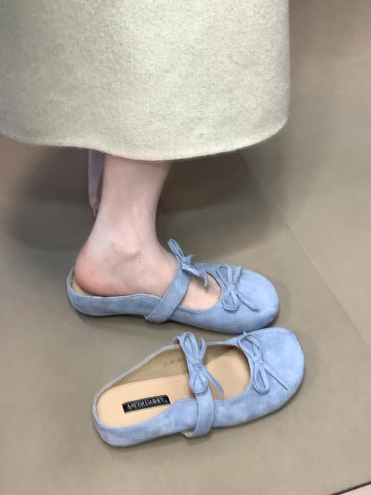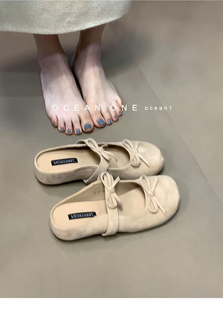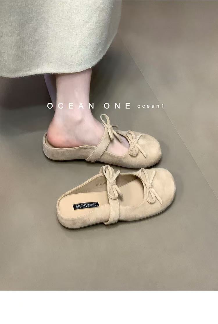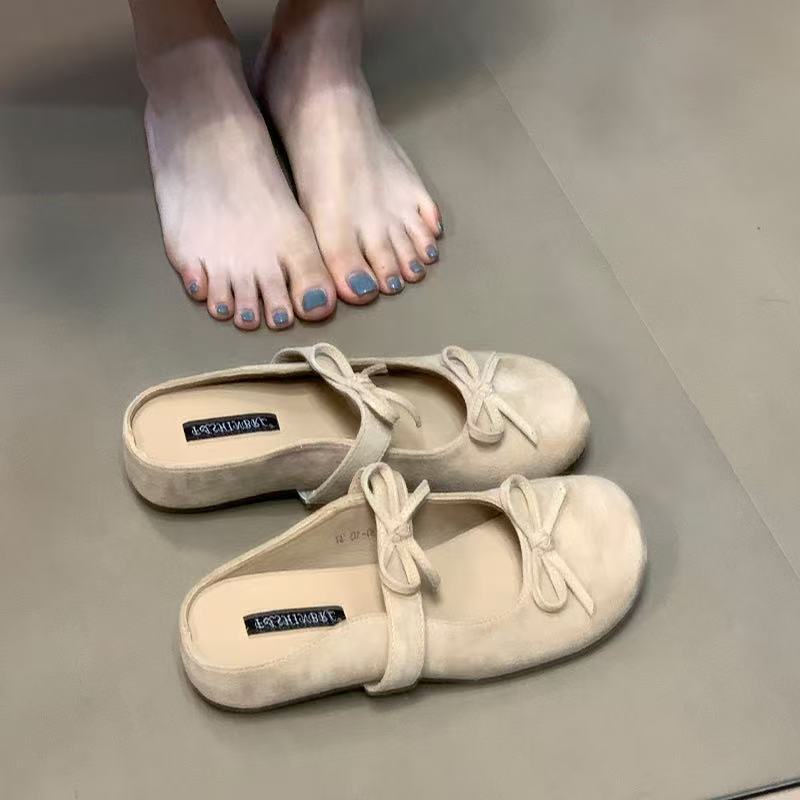 Zapatillas de lazo de noche francesa zapatos Mary Jane mujer 2025 nuevo verano suela suave zapatos Muller con falda zapatos individuales