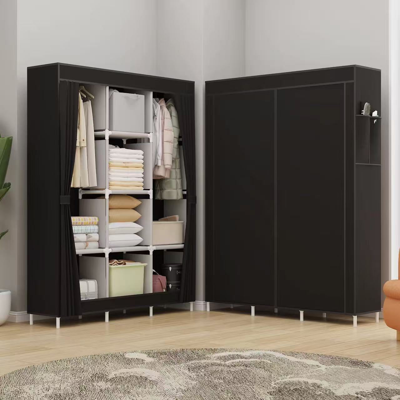armario simple armario de tela dormitorio casero doble capa almacenamiento de ropa armario grueso marco de acero completo percha de ropa a prueba de polvo