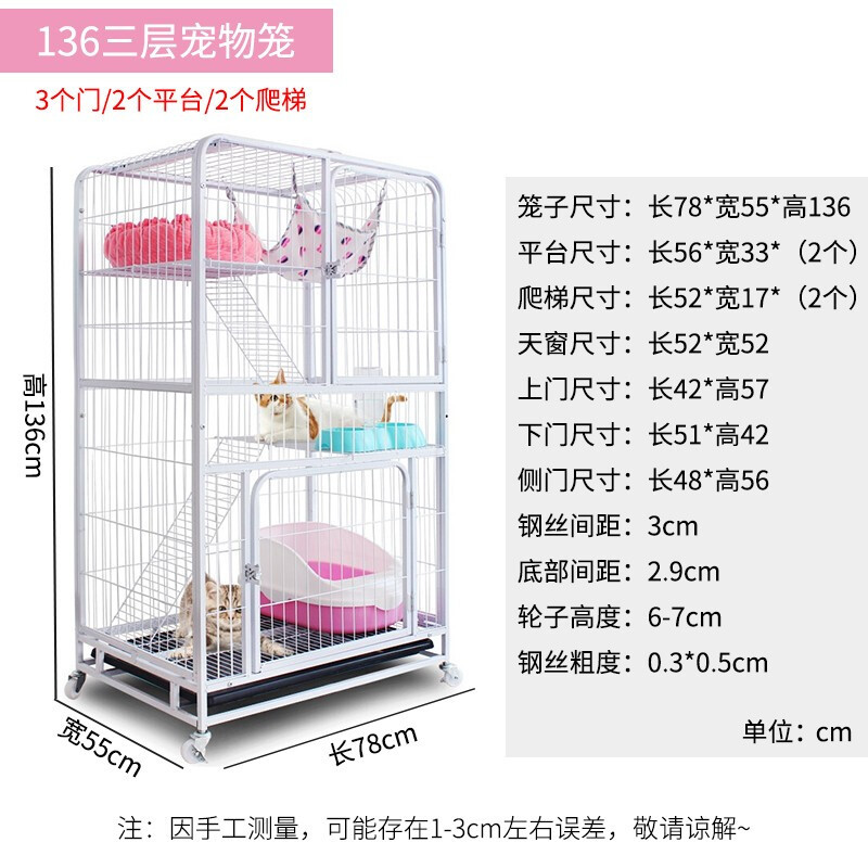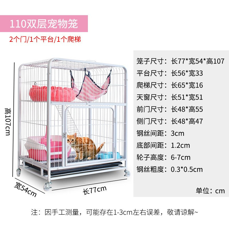 | Especificaciones | Modelo loft negro de 1,1m con puerta lateral (77*54*107CM),Modelo loft rosa de 1,1m con puerta lateral (77*54*107CM),Puerta central blanca de 1,1 m (77*54*107 CM),Modelo loft negro de 1,35m con puerta lateral (78*54,5*136,5CM),Modelo loft rosa de 1,35m con puerta lateral (78*54,5*136,5CM),Puerta central rosa de 1,36 m (78*55*136 CM),Puerta central blanca de 1,36m (78*55*136CM),Estante de almacenamiento jaula para gatos negro (63*45*76),Jaula para gatos blanca con estante de almacenamiento (63*45*76 cm),Estante de almacenamiento jaula para gatos negro (78,5*52*100),Jaula para gatos blanca con estante de almacenamiento (78,5*52*100 cm),Estante jaula para gatos negro (79*54*136cm),Estante jaula para gatos blanco (79*54*136cm),Jaula para gatos negra con estante de almacenamiento (86*61*140),Jaula para gatos blanca con estante de almacenamiento (86*61*140),Espacio libre-una sola fila-62*48*80cm,Espacio libre-una sola fila-71*54*100cm,Espacio libre-una sola fila-71*54*130cm,Espacio libre doble capa, doble fila, 124*48*80cm,Espacio libre blanco, tres niveles, doble fila, 142*54*100cm.,Blanco, Amplio Espacio Abierto, Tres Niveles, Doble Fila, 142*54*130cm |
