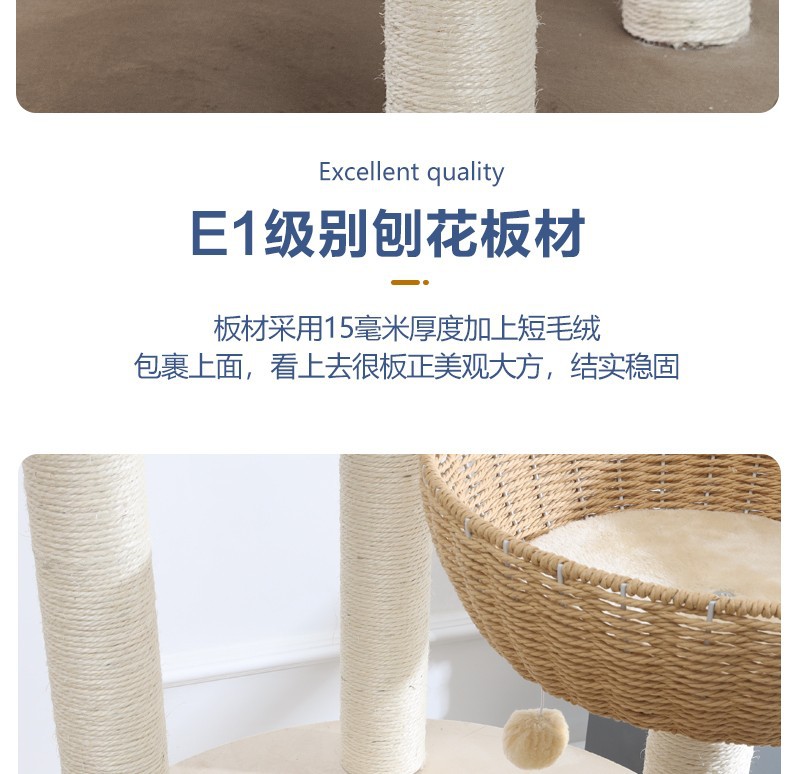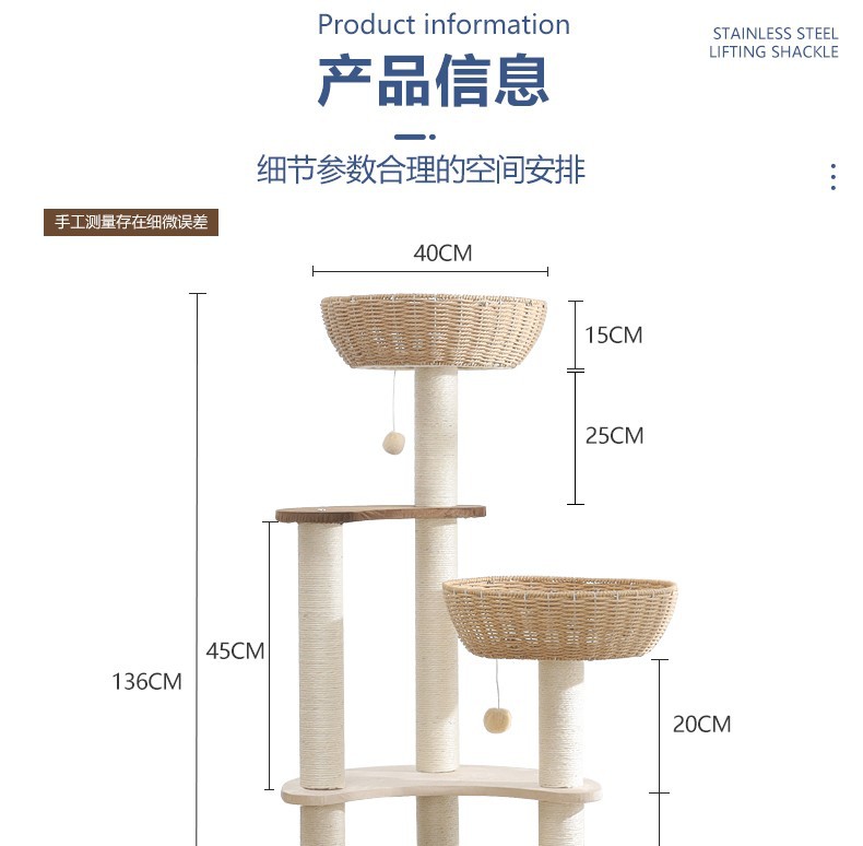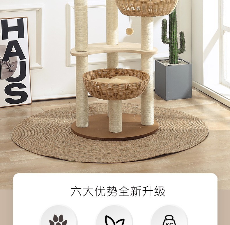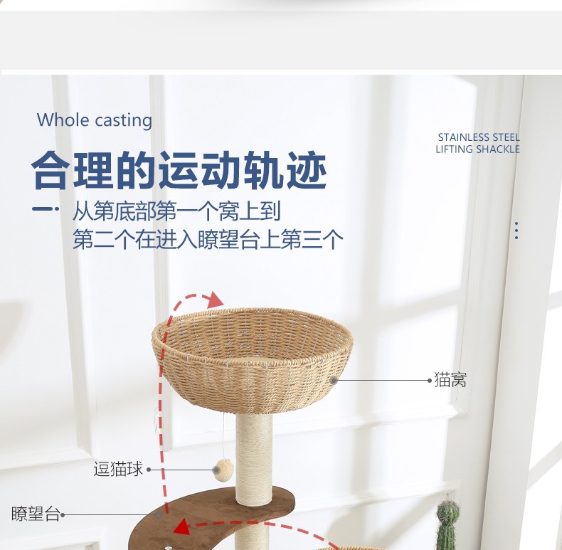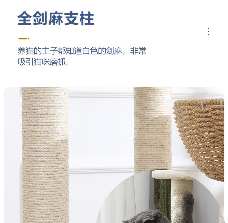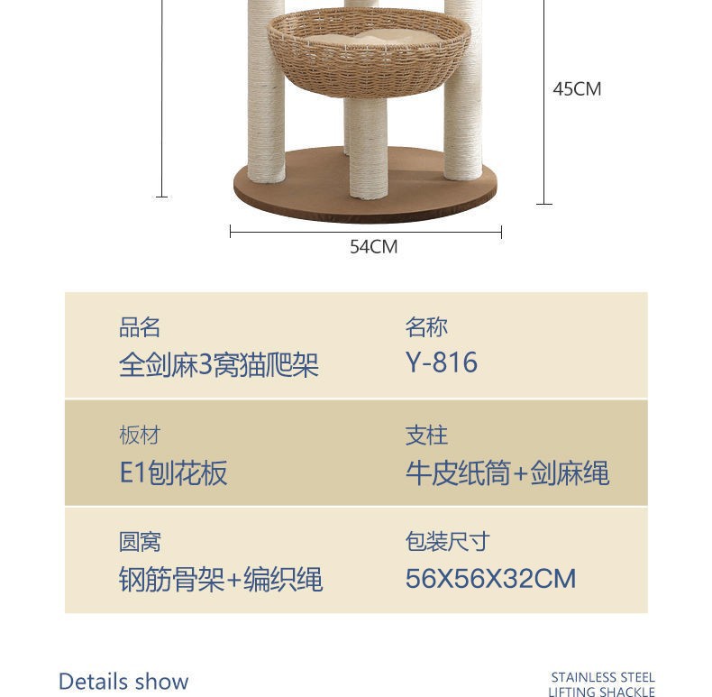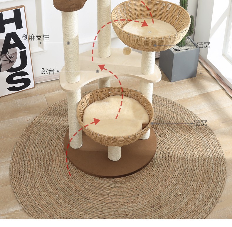 Árbol para Gatos Grande Transfronterizo Hecho de Sisal, Soporte para Gatos que Ahorra Espacio, Modelo de Exportación, Árbol para Gatos Integrado con Cama para Gatos, Suministros Populares para Mascotas.