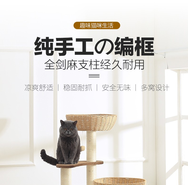 Marco de escalada para gatos personalizado, flores de sisal, tablero de agarre para gatos integrado al por mayor, guarida para gatos, no ocupa un área, columna de agarre, plataforma de salto, suministros para mascotas