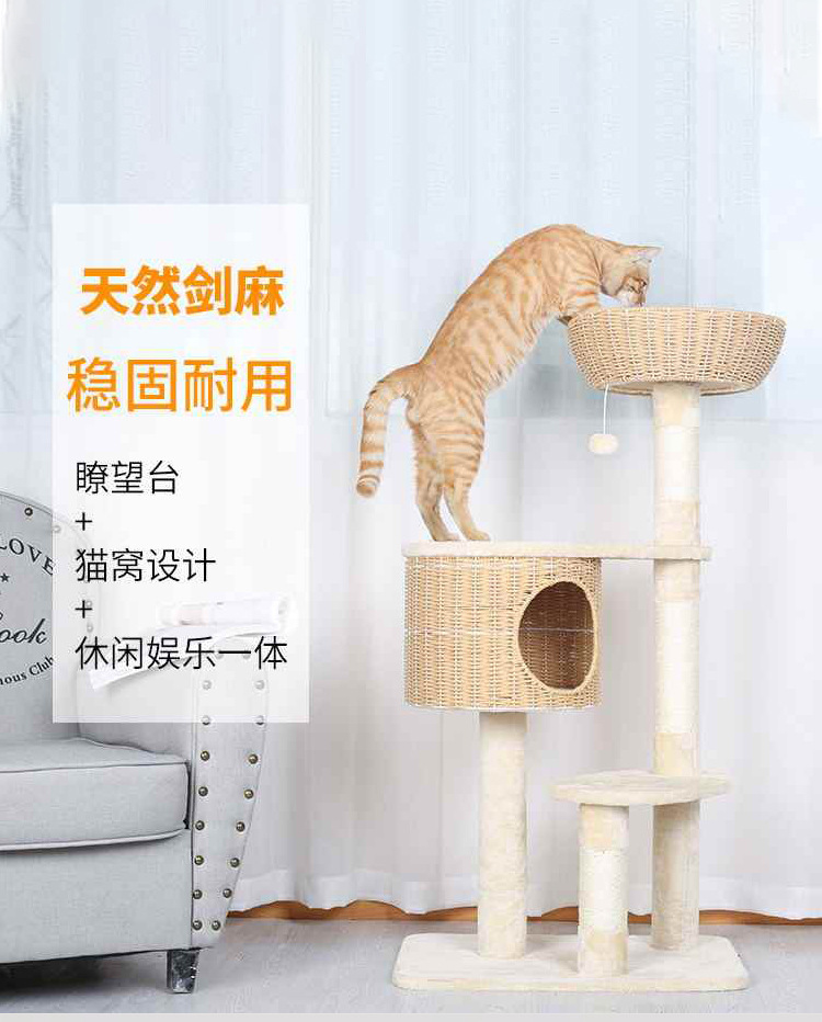 Estante de gato doméstico pequeño tipo de gato estante de gato agujero de árbol gato nido de cuatro estaciones de doble capa salto de juguete de seda gato