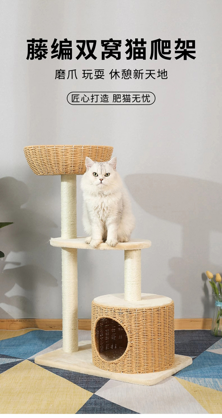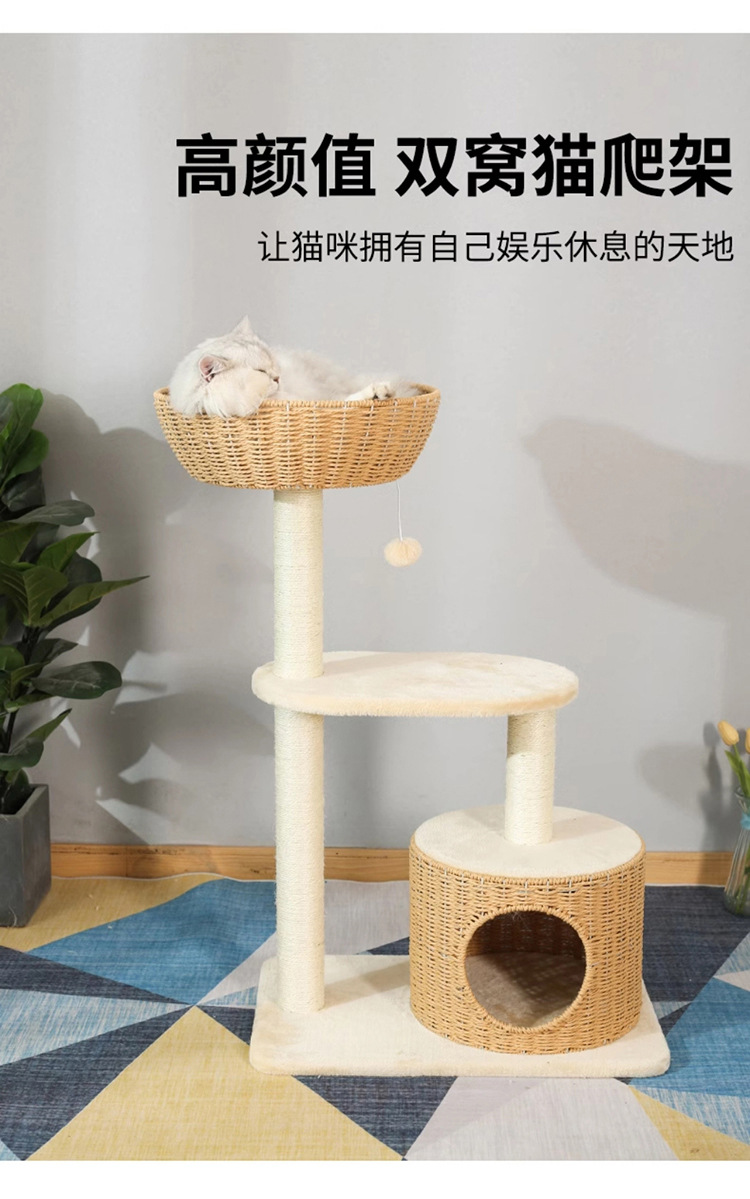 Nido de gatos doméstico de doble capa cuatro estaciones general gato escalada fieltro árbol de gato integral agarrar placa cerrada gato casa gato agujero árbol