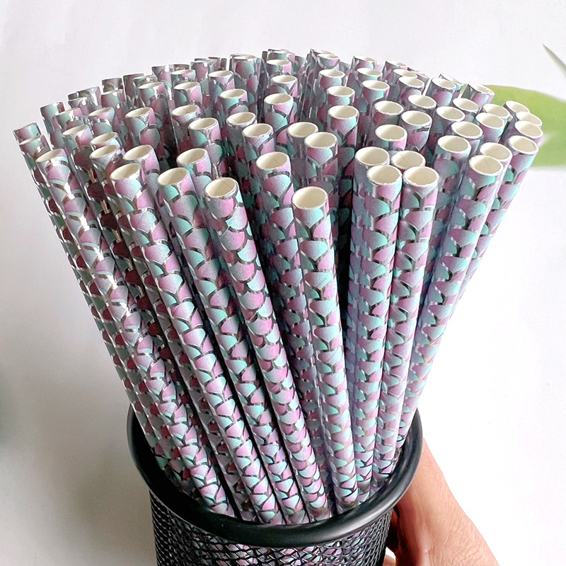 Nueva paja de papel desechable degradable protección del medio ambiente paja de papel Escala de pescado postre leche fiesta de té decoración paja