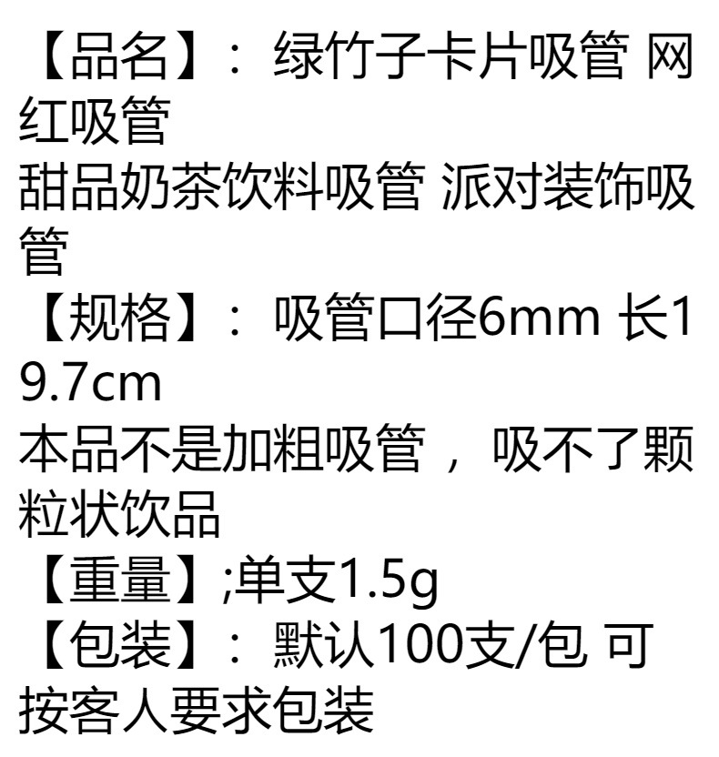 Internet celebridad paja té verde bambú verde Tarjeta de papel paja desechable postre degradable fiesta leche té paja