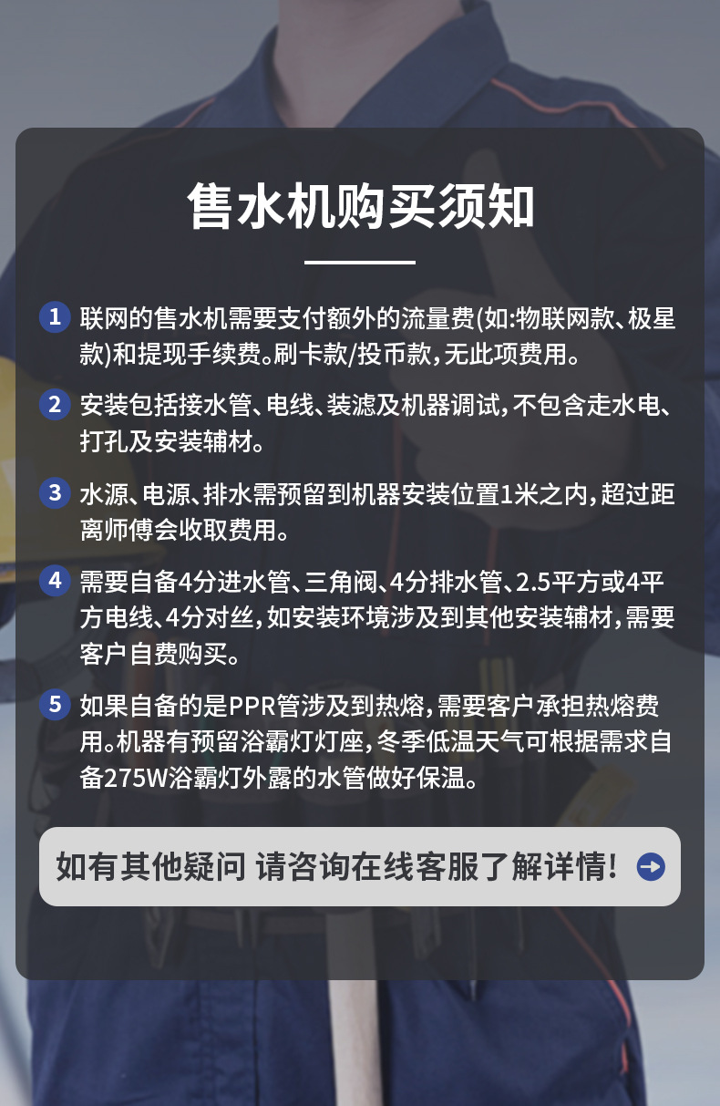 | Especificaciones y modelos | 400G deslizamiento de tarjetas / monedas / escaneo de código (azul), 800G deslizamiento de tarjetas / monedas / escaneo de código (azul), 400G deslizamiento de tarjetas / monedas / escaneo de código (blanco), 800G deslizamiento de tarjetas / monedas / escaneo de código (blanco), 800G doble salida de agua (rojo), 400G modelo de estrella polar, 800G modelo de estrella polar, 400G deslizamiento de tarjetas / monedas (modelo normal), 400G deslizamiento de tarjetas / monedas / escaneo de código (modelo IoT), 800G deslizamiento de tarjetas / monedas (modelo normal), 800G deslizamiento de tarjeta / monedas / escaneo de código (Internet de las cosas), 400G interior, 800G interior |