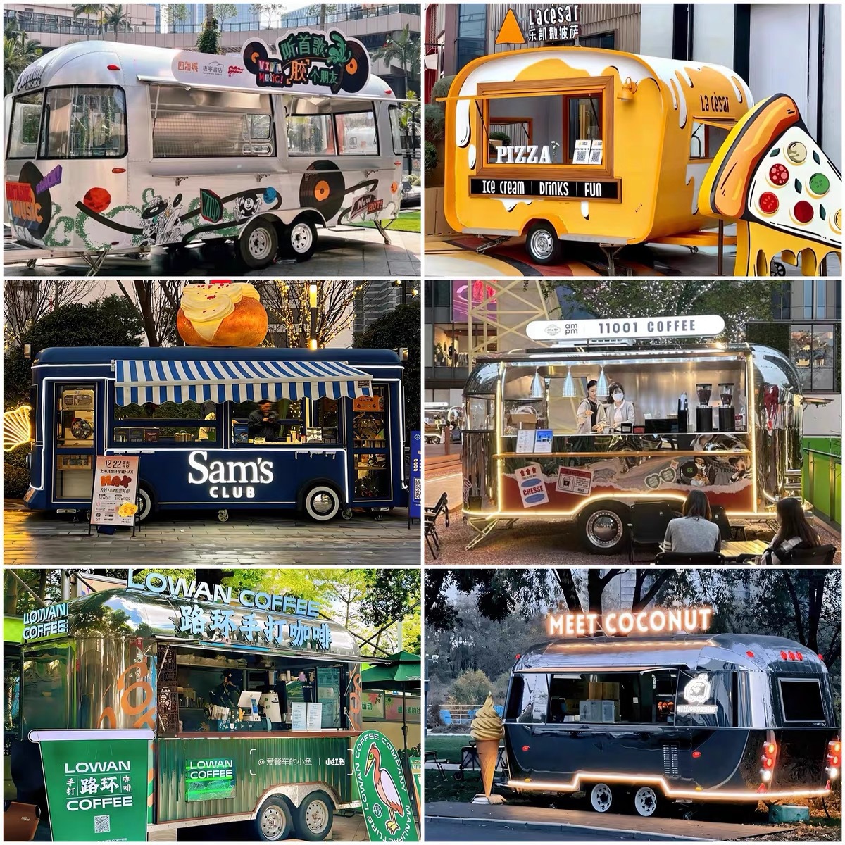 Commercial móvil multifuncional en línea popular coche de comedor barbacoa leche té mercado nocturno puesto de ala de gaviota puerta de snack móvil quiosque