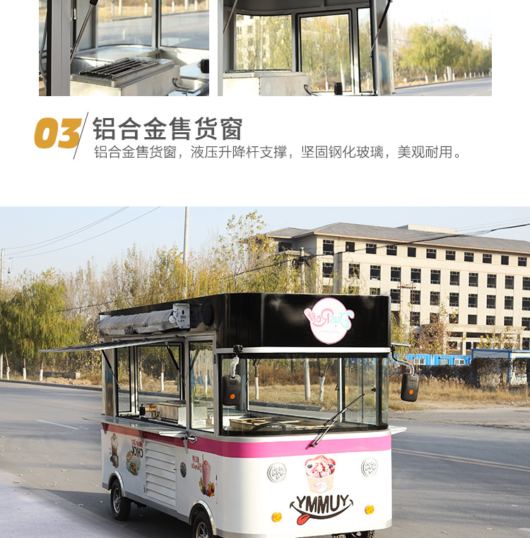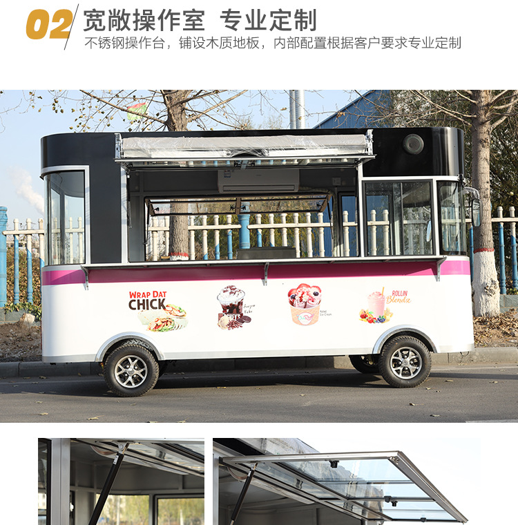 Yuncang café, té con leche, comida comercial, punto escénico móvil, carro eléctrico de bocadillos de cuatro ruedas, carro eléctrico de restaurante de cabina