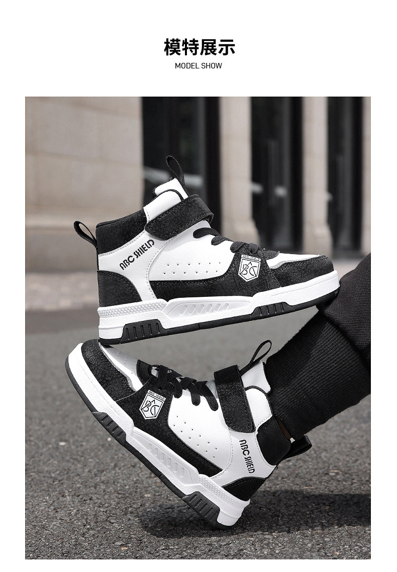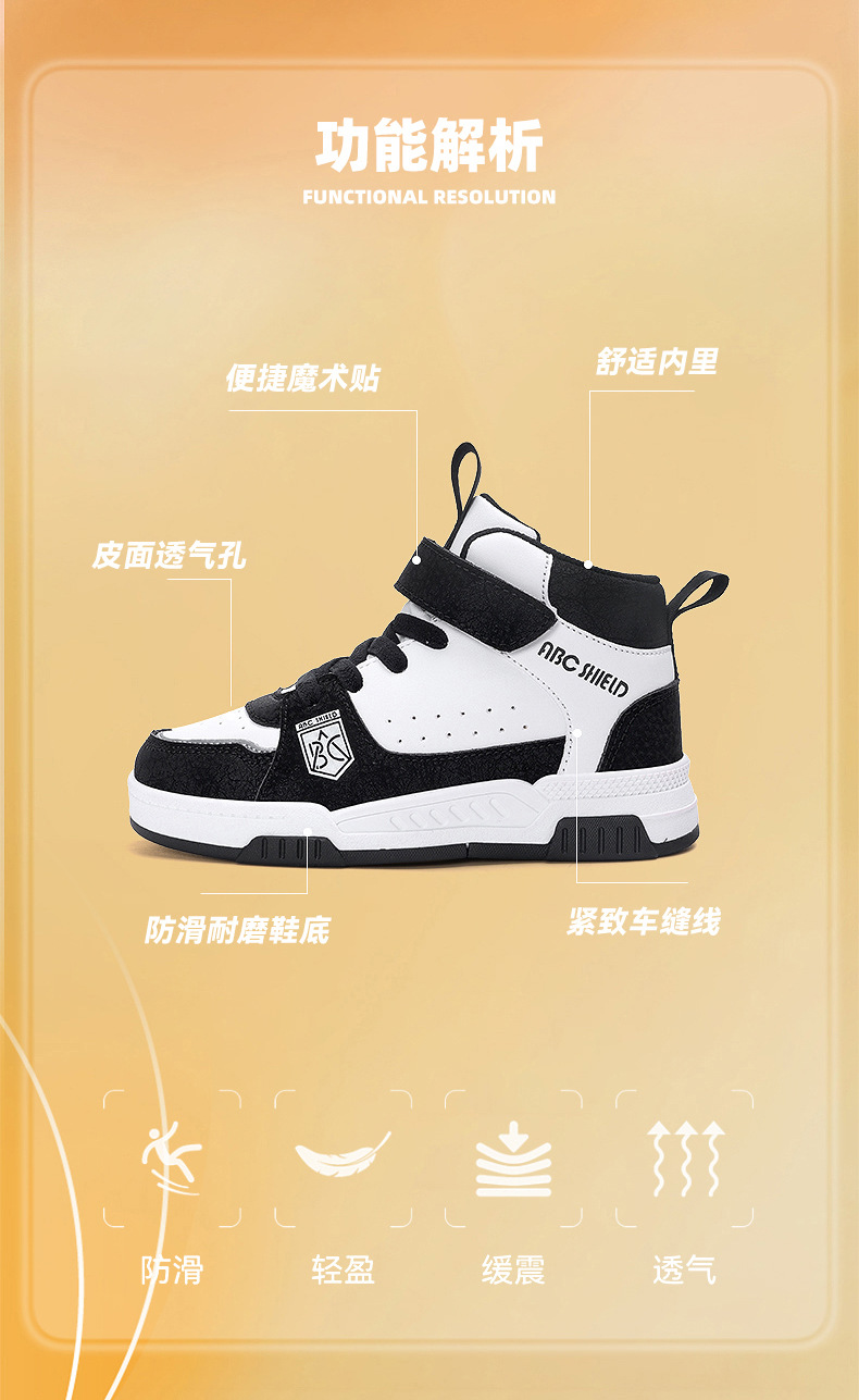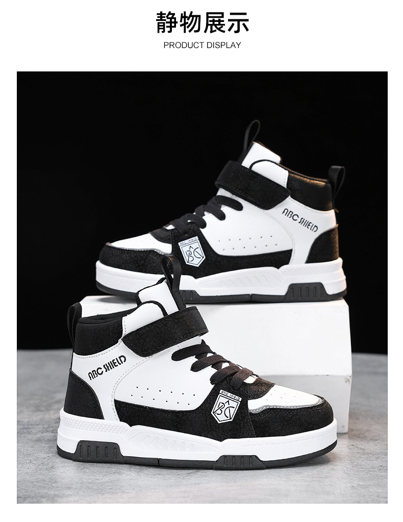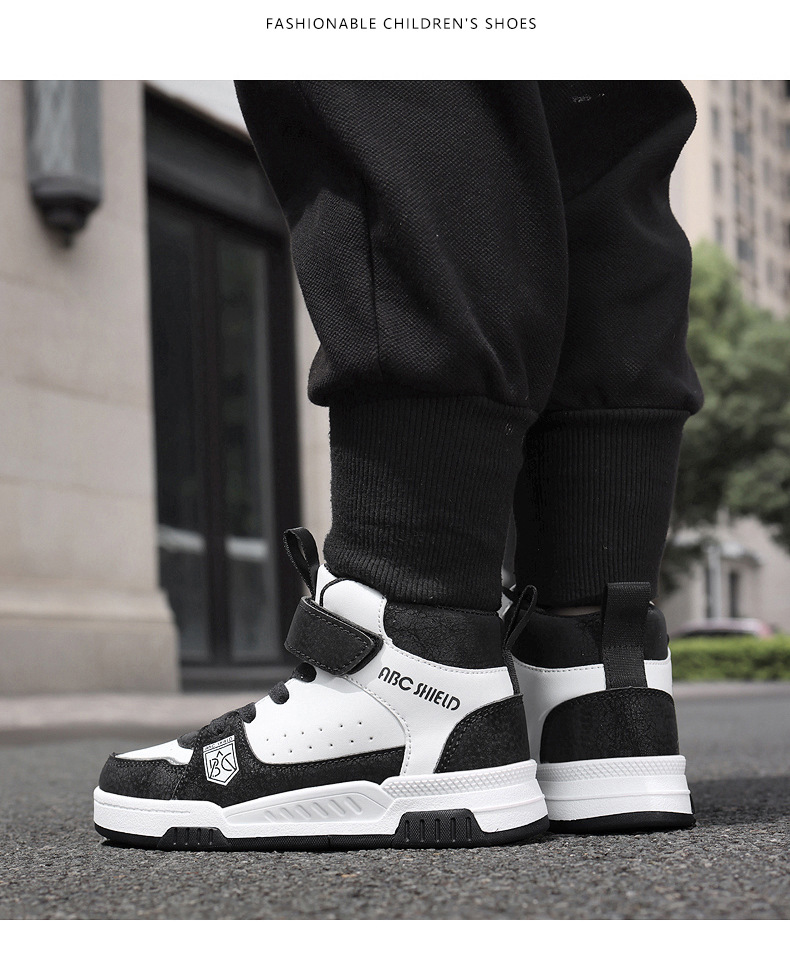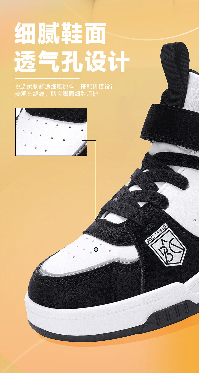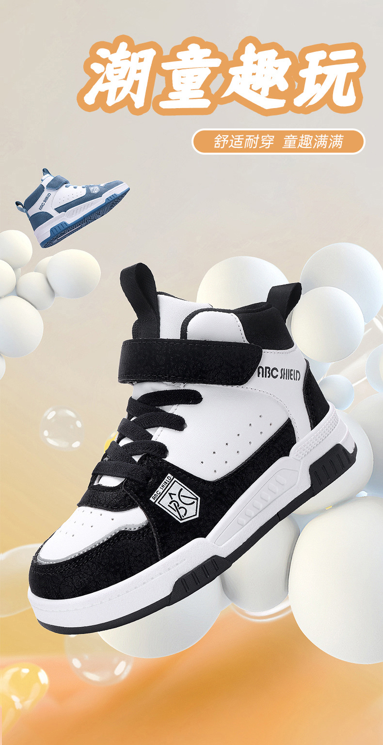 ABC童鞋春秋季皮面新款儿童板鞋男孩女孩运动鞋魔术贴耐户外跑鞋