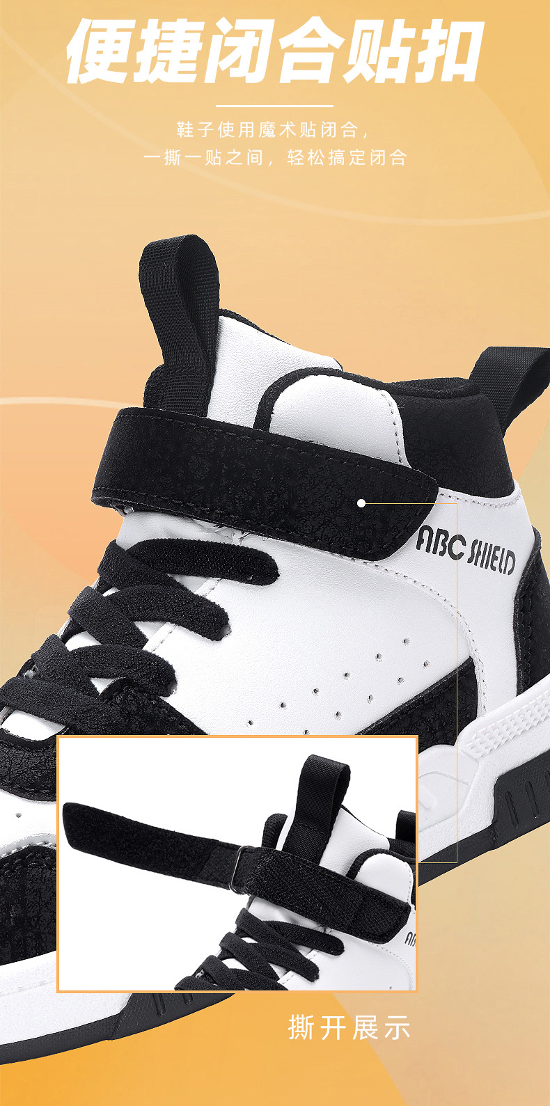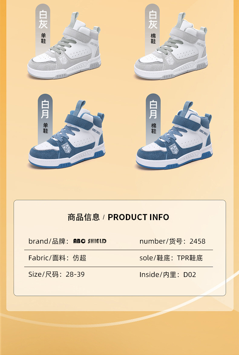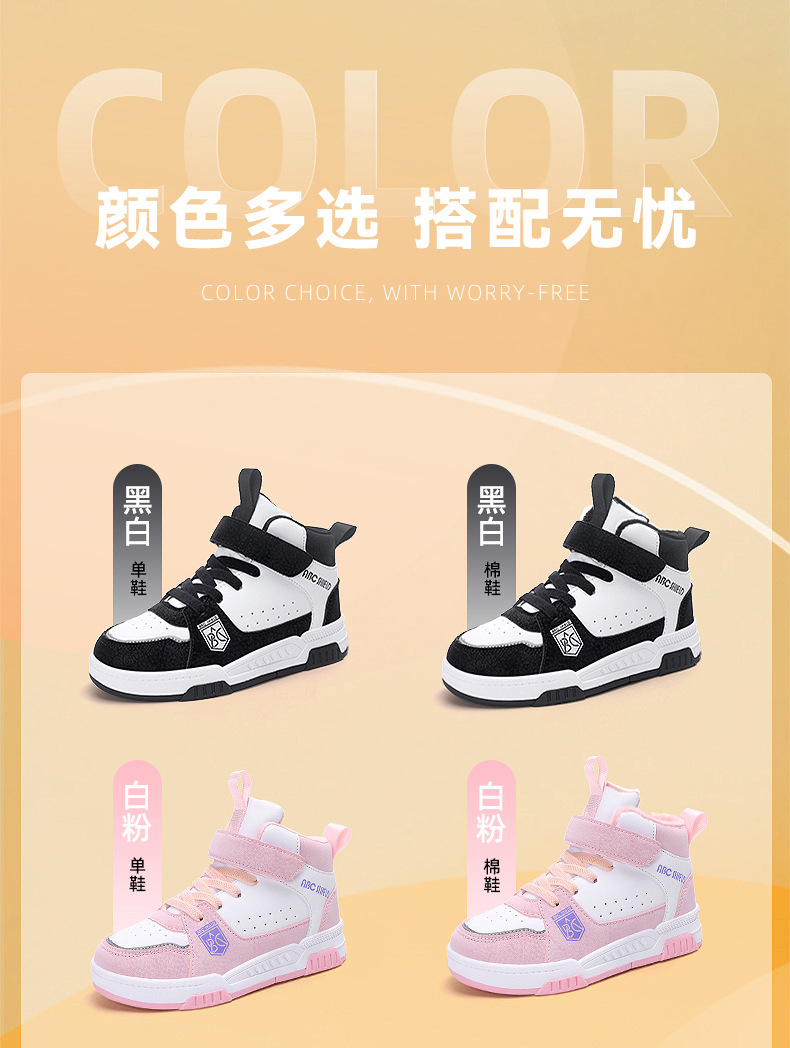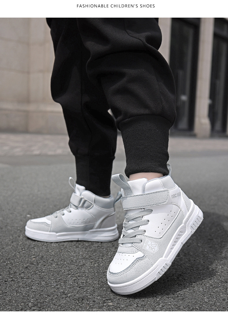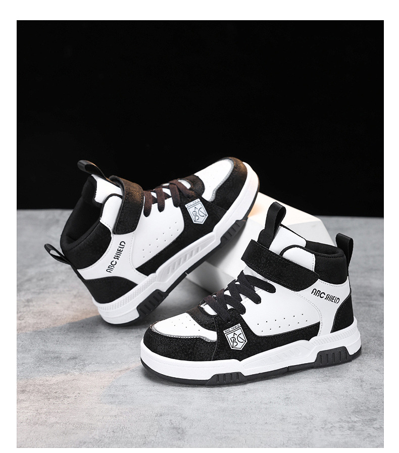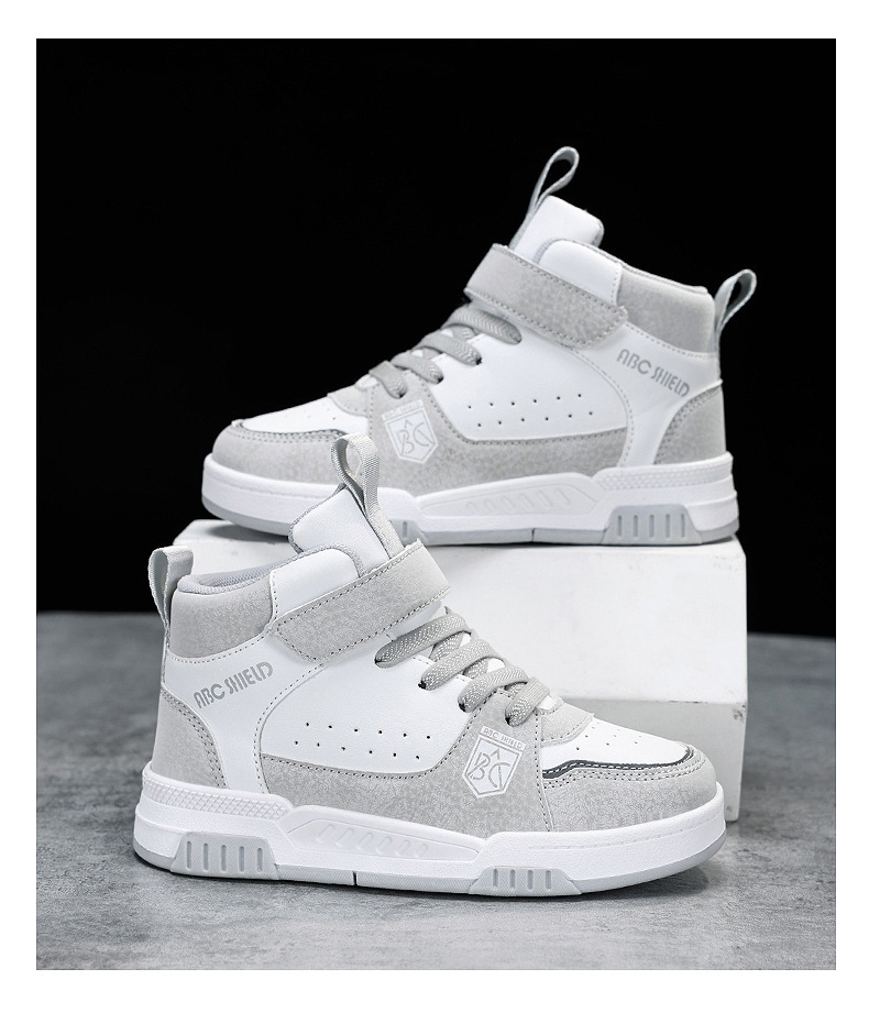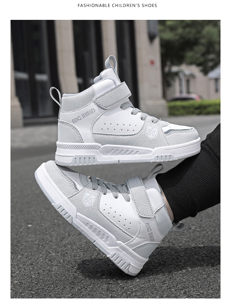 ABC童鞋春秋季皮面新款儿童板鞋男孩女孩运动鞋魔术贴耐户外跑鞋