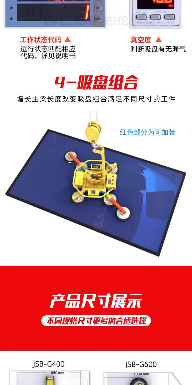| Modelo | Modelo económico y práctico de succión 300KG, modelo económico y práctico de succión 400KG, succión 400KG versión de valor superior, succión 400KG versión de valor superior de alta configuración + control remoto, succión 400KG versión estándar inteligente, succión 400KG versión inteligente de alta configuración + control remoto, succión 600KG versión de valor superior, succión 600KG versión de valor superior de alta configuración + control remoto, succión 600KG versión estándar inteligente, succión 600KG versión inteligente de alta configuración + control remoto, succión 800KG versión estándar inteligente, succión 800KG placa inteligente de alta configuración + control remoto, Succión 1000KG versión inteligente de alto rendimiento, succión 1000KG versión inteligente de alto rendimiento + control remoto, succión 1200KG sistema de control inteligente de doble host versión de alto rendimiento, succión 1400KG sistema de control inteligente de doble host versión de alto rendimiento, succión 1600KG sistema de control inteligente de doble host versión de alto rendimiento, succión 1800KG sistema de control inteligente de doble host versión de alto rendimiento, succión 2000KG sistema de control inteligente de doble host versión de alto rendimiento |