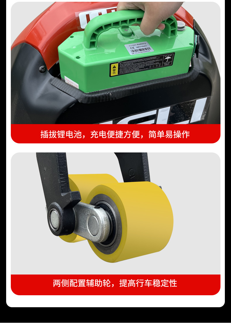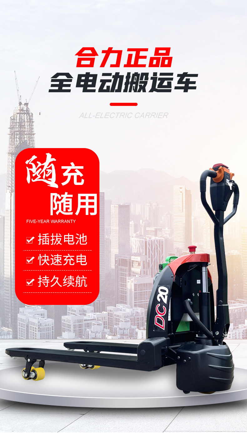 Capacidad resultante de 2 toneladas caminante de litio eléctrico transporte hidráulico carretilla elevadora de baterías bandeja elevadora tierra buey elevadora