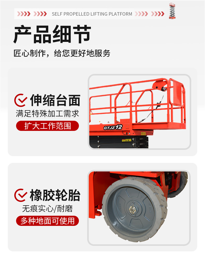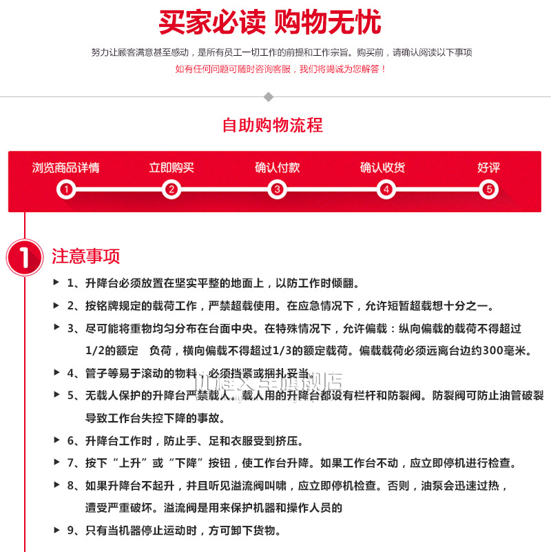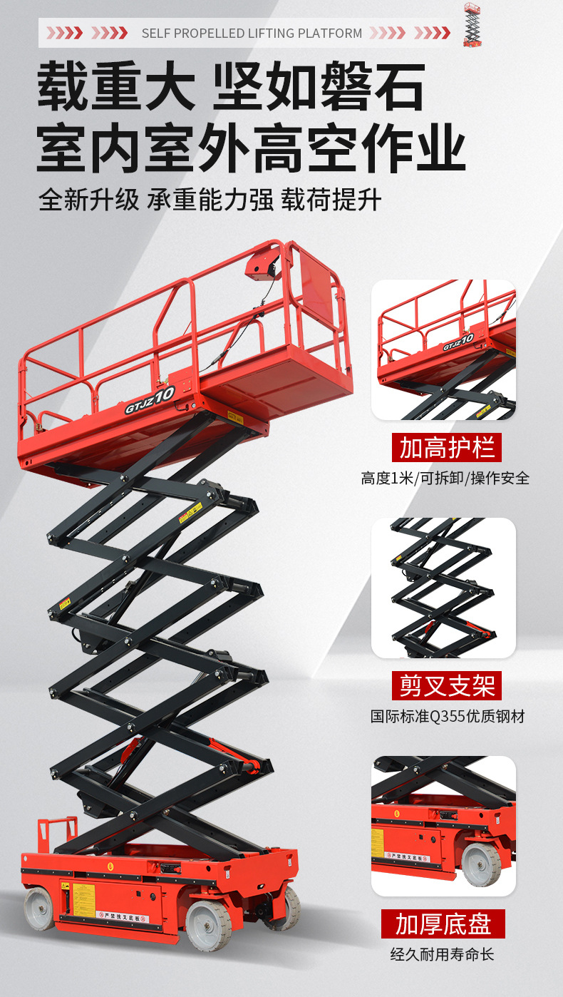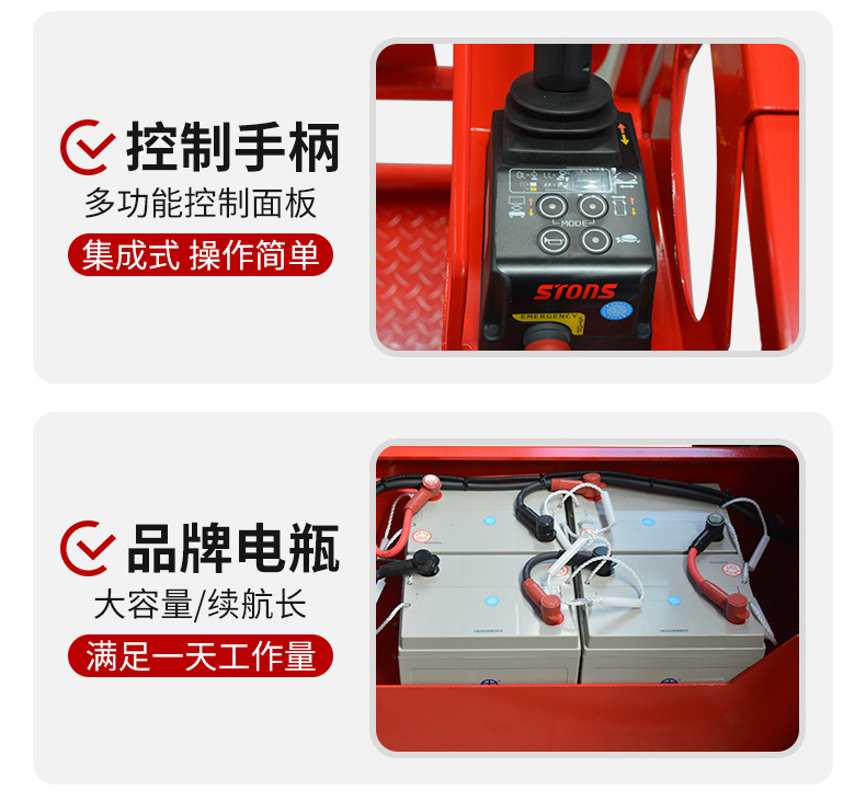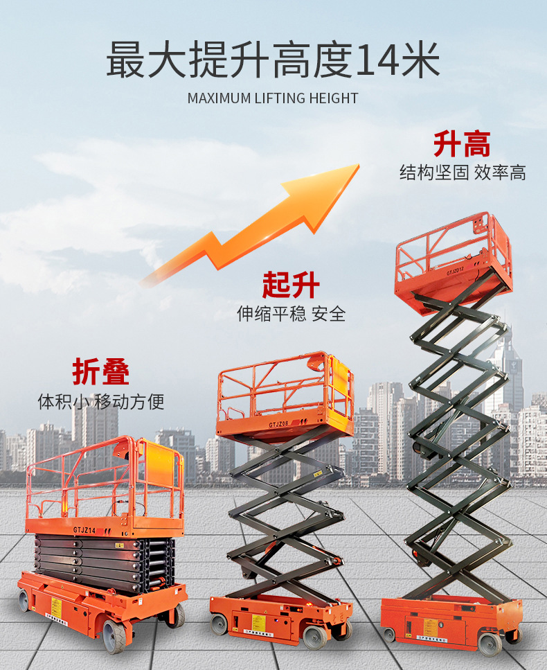 | Modelo | 300 kg - elevación de 3 m - mesa 1170 * 600 mm [modelo de rueda universal], 300 kg - elevación de 3.9 m - mesa 1170 * 600 mm [modelo de rueda universal], 300 kg - elevación de 4.8 m - mesa 1170 * 600 mm [modelo de rueda universal], 300 kg - elevación de 3 m - mesa 1170 * 600 mm [dirección hidráulica], 300 kg - elevación de 3.9 m - mesa 1170 * 600 mm [dirección hidráulica], 300 kg - elevación de 4.8 m - mesa 1170 * 600 mm [dirección hidráulica], 240 kg - elevación de 4 m - mesa 1290 * 700 mm [dirección hidráulica], 230 kg - elevación de 6 m - mesa 1640 * 740 mm [dirección hidráulica], 380 kg - elevación de 6 m - mesa 2260 * 810 mm [dirección hidráulica], 550 kg - elevación de 6 m - mesa 2260 * 1130 mm [dirección hidráulica], 230 kg-elevación de 8 m-superficie 2260 * 810 mm [dirección hidráulica], 450 kg-elevación de 8 m-superficie 2260 * 1130 mm [dirección hidráulica], 320 kg-elevación de 10 m-superficie 2260 * 1130 mm [dirección hidráulica], 320 kg-elevación de 12 m-superficie 2260 * 1130 mm [dirección hidráulica], 227 kg-elevación de 14 m-superficie 2640 * 1130 mm [dirección hidráulica], 320 kg - elevación 16 m - mesa 3000 - 1140 mm [dirección hidráulica], 300 kg - elevación 18 m - mesa 3150 - 1500 mm [dirección hidráulica], 300 kg - elevación 20 m - mesa 3150 - 1500 mm [dirección hidráulica], 240 kg - elevación 6 m - mesa 1670 * 760 mm [auto-track], 320 kg - elevación de 8 m - mesa 2263 * 1129 mm [auto-track], 300 kg - elevación de 10 m - mesa 2271 * 1110 mm [auto-track], 300 kg - elevación de 12 m - mesa 2271 * 1110 mm [auto-track], [piernas plegables manuales personalizadas] [batería de litio personalizada], [nivelación eléctrica personalizada con un botón] [carga grande personalizada],[Seguro conjunto nacional] [Servicio in situ] [Informe de detección + seguro de 5 millones] |