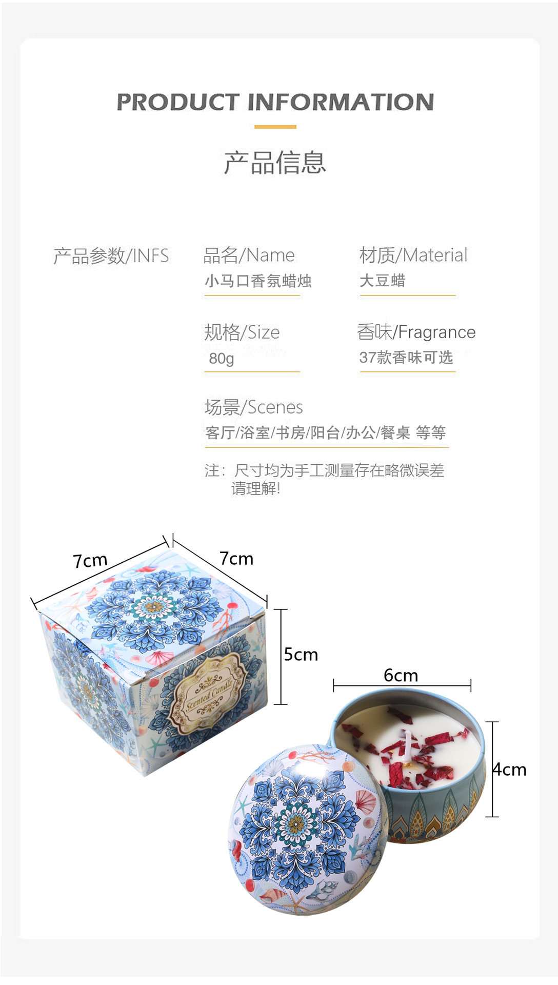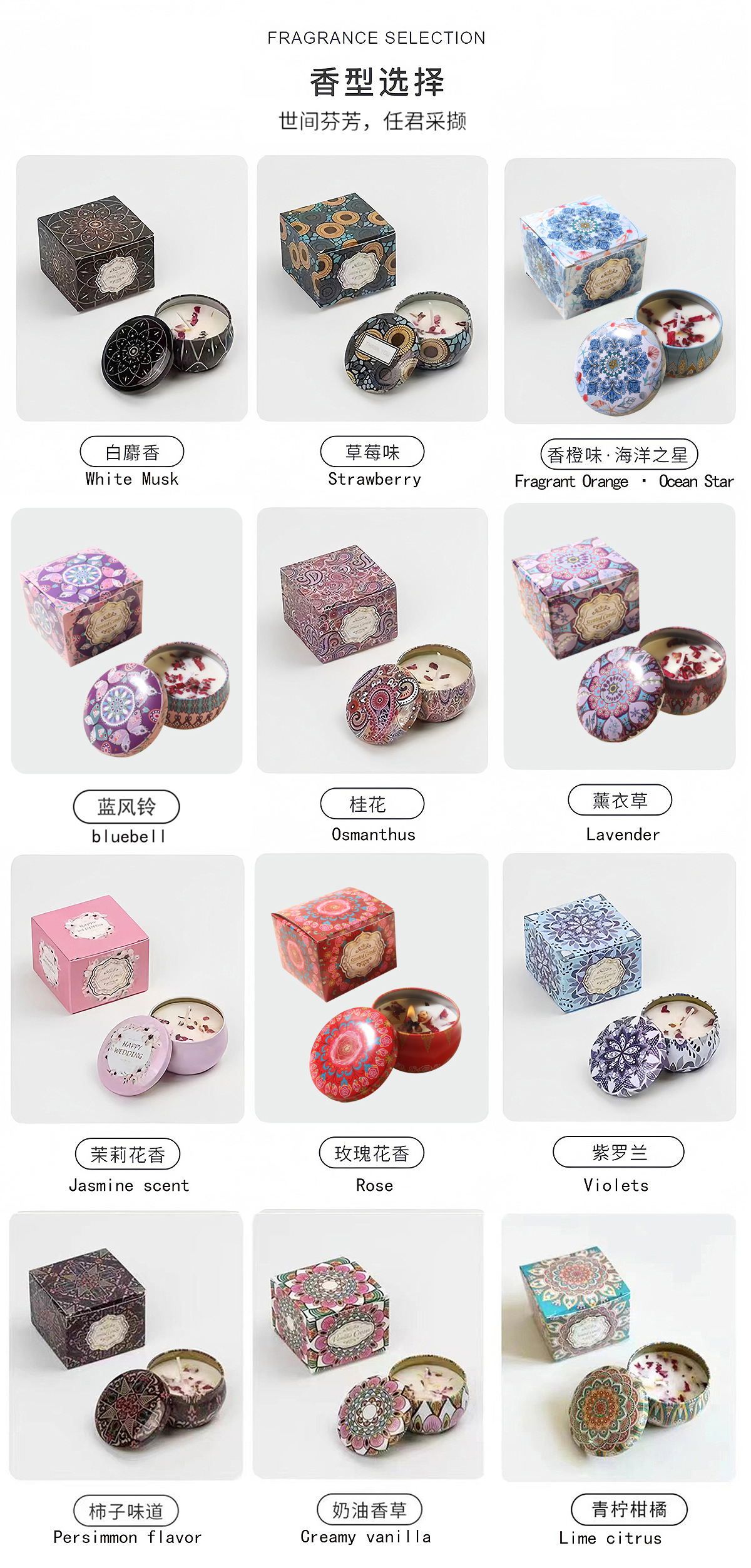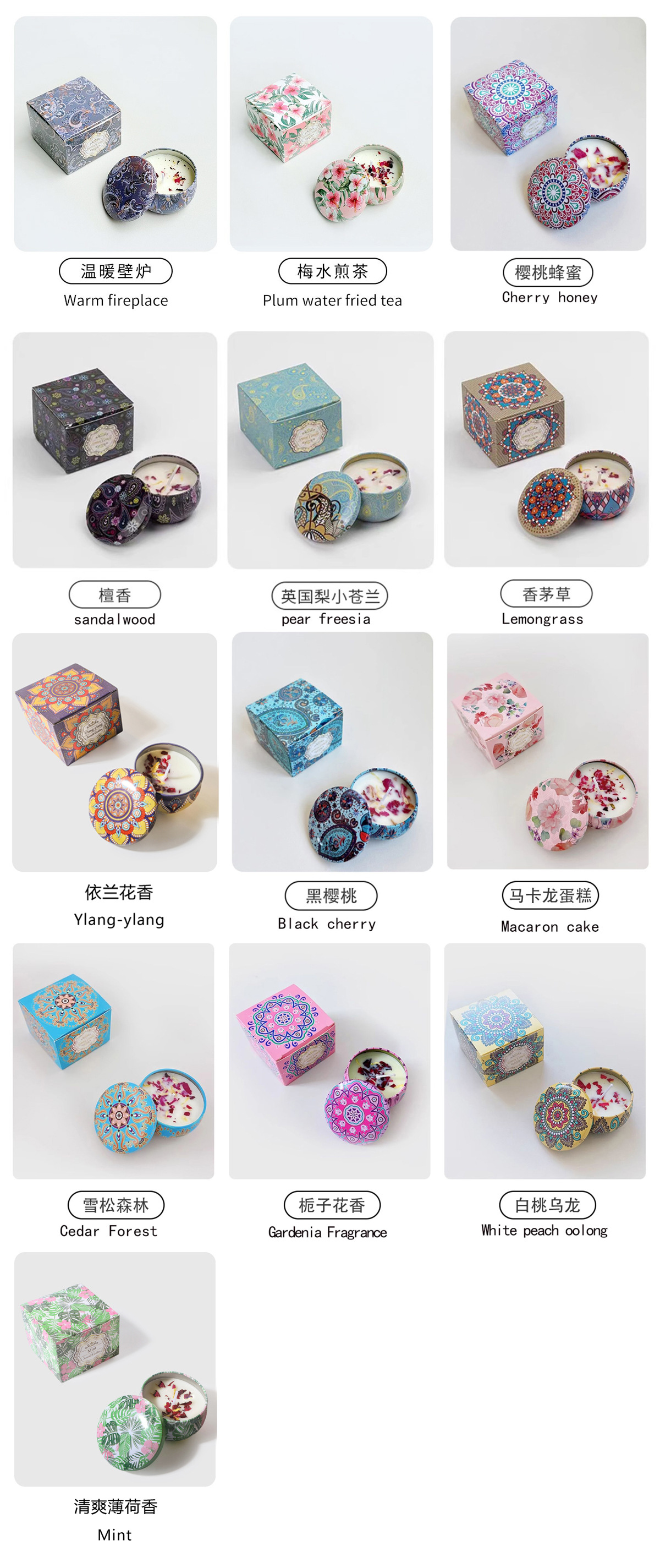 | Tamaño | Nuevo patrón de lavanda, nuevo patrón de fragancia de rosa, nuevo patrón de corazón del océano, nuevo patrón de campana de viento azul, lavanda, fragancia de rosa, perra inglesa, fragancia de jazmín, sándalo vintage, almizco blanco, bosque negro, estrella del mar, campana de viento azul, caqui japonés, naranja de mango, citronella, arroz de arroz, colonia, osmanthus, crema de vainilla, fragancia de peonía, miel de cereza, cereza negra, violeta, pastel de macarón, bosque de cedro, flores de gardenia, oolong de melocotón blanco, Hibiscus silvestre, bayas, leche de coco, jengibre de té blanco, tomate sudamericano, rosa de litchi, latte de fruta, naranja amarga, niebla, higos, peras de manzana, chimenea cálida, té frito de ciruela, Guhe Cassamellae, pareja Yilan, menta, fresas |