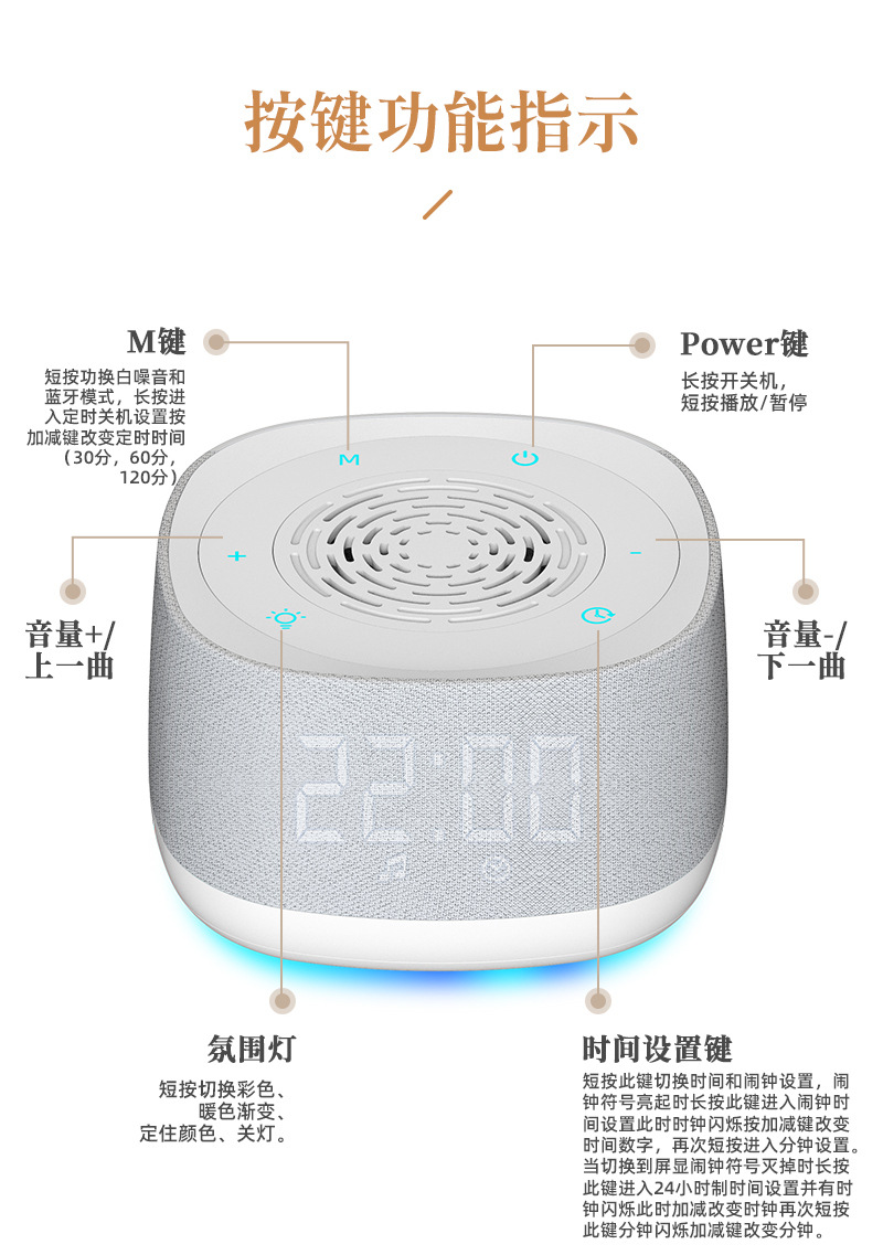 Nuevo producto ayuda para dormir de ruido blanco Altavoz Bluetooth Altavoz para dormir con luz de respiración Instrumento para dormir Grabadora de ruido blanco transfronterizo