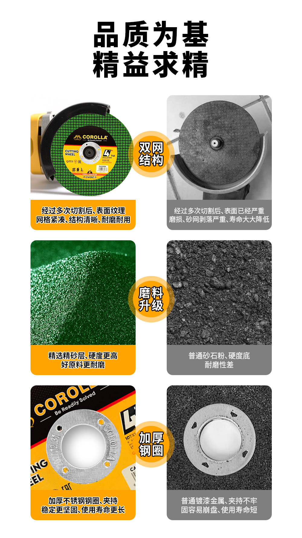 | Especificaciones | Red negra doble verde de tres pulgadas 76*1.2*10mm,Red negra doble verde de cuatro pulgadas 107*1.2*16mm,Malla doble roja de cuatro pulgadas, 107*1.2*16mm,Red negra doble verde de cuatro pulgadas 107*1.2*16mm,Red amarilla doble amarilla de cuatro pulgadas 107*1.2*16mm,Red doble verde 5 pulgadas 125*1.2*22.23mm,Red doble verde 12 pulgadas 300*2.0*25.4mm,Red única verde 14 pulgadas 355*2,5*25,4mm,Red doble verde 14 pulgadas 355*2,5*25,4mm,Red doble verde de tres niveles 14 pulgadas 355*2,5*25,4 mm,Malla simple verde de primera clase 16 pulgadas 405*3*25,4 mm |
