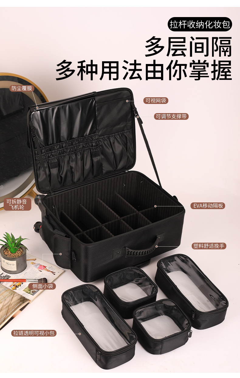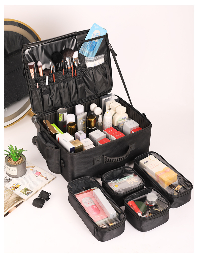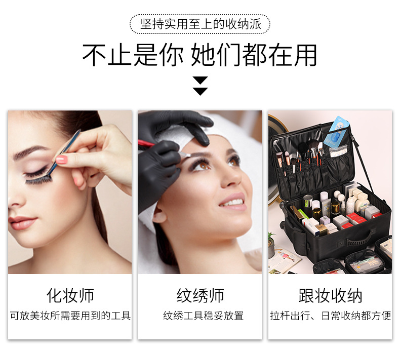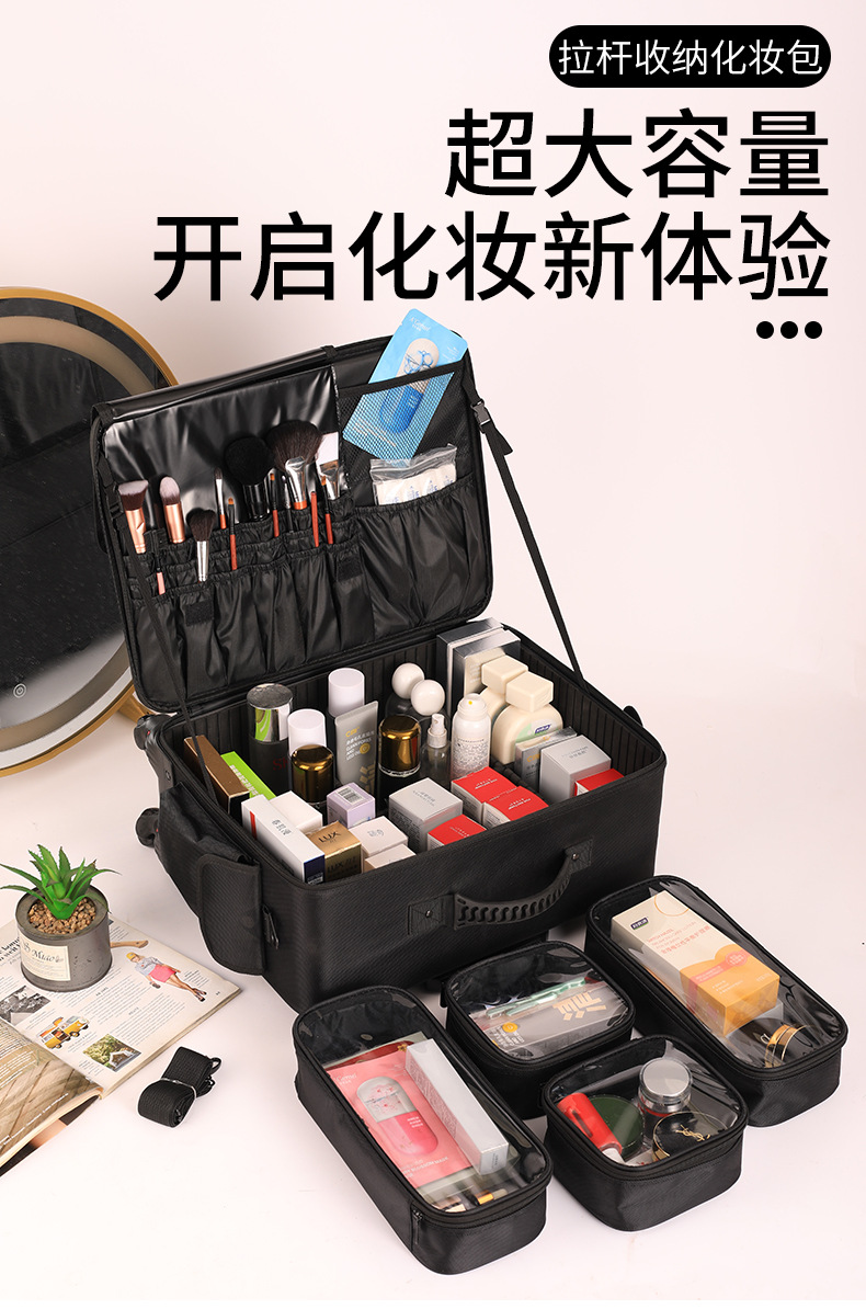 Caja de maquillaje profesional, maquillaje de talón, maquillaje de gran capacidad, maquillaje de pestañas y uñas, 2025 nuevo tipo de caja de tracción, caja portátil universal para mujeres