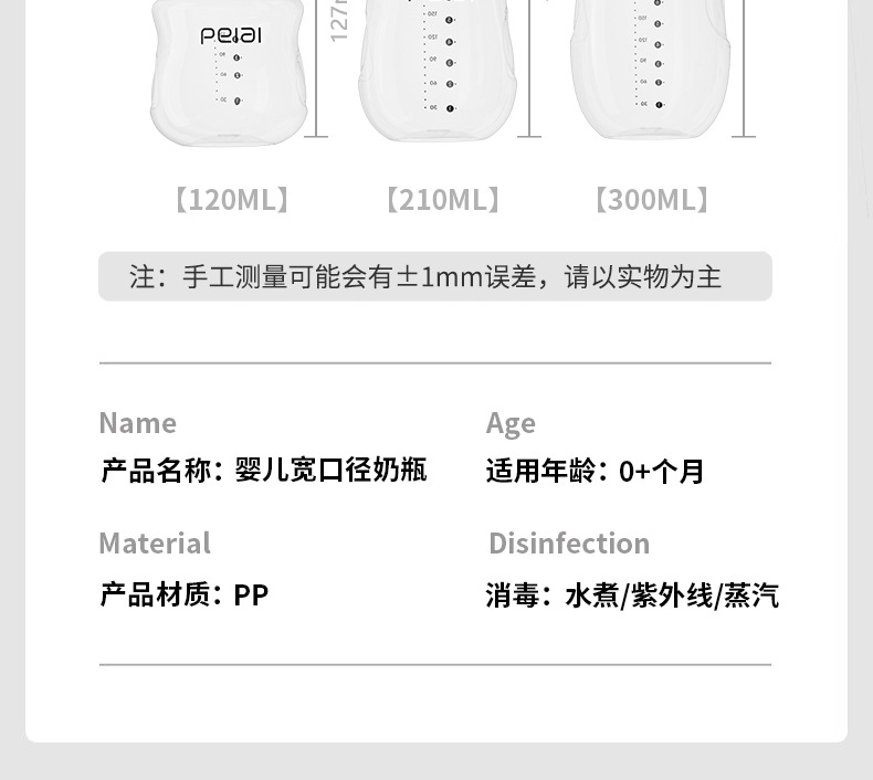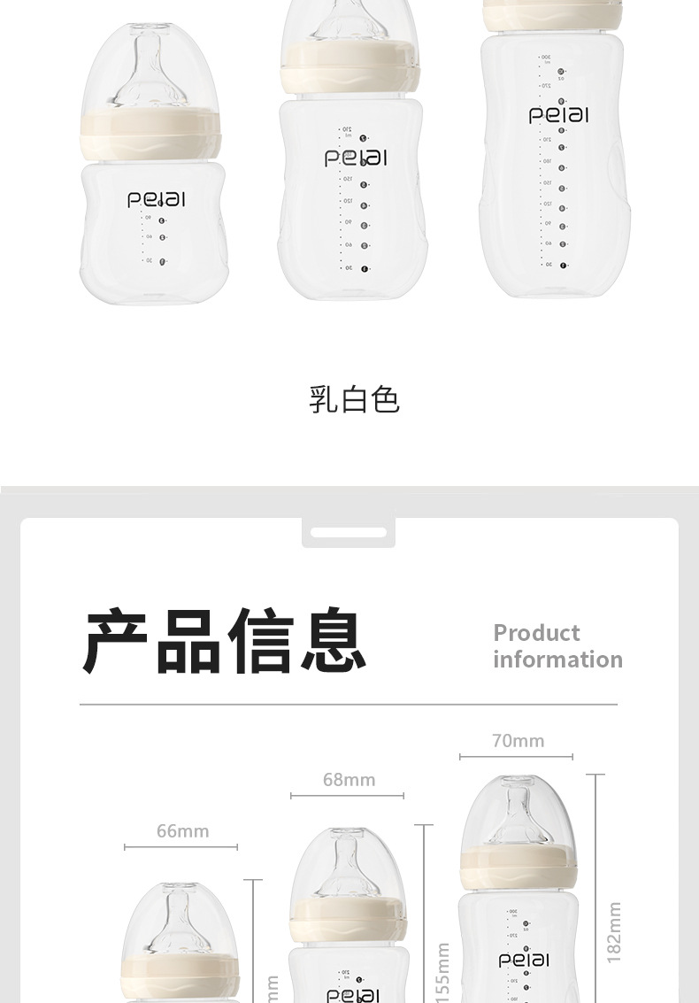 Pezón de boca ancha para bebés 180/240/280ml Serie simple con mango PP biberón sin pajitas