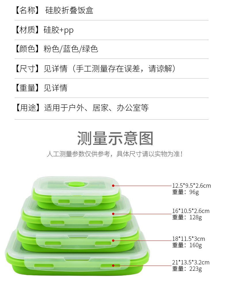 | Número de artículo | Caja de almuerzo de silicona plegable |