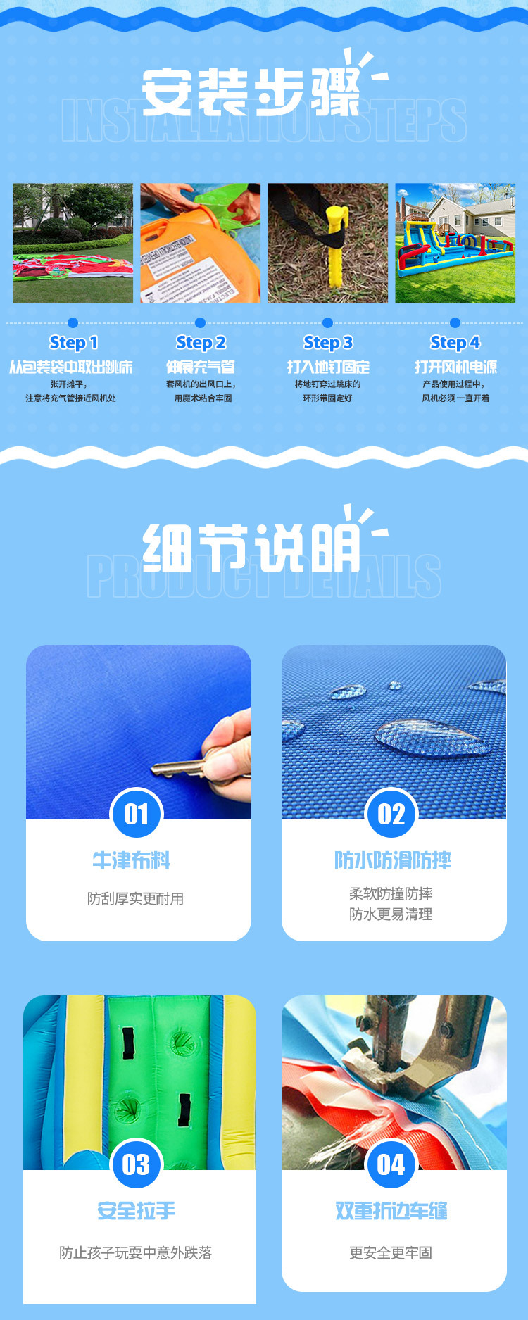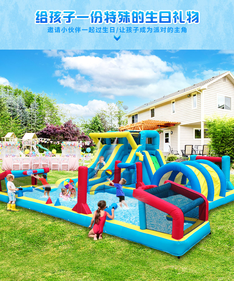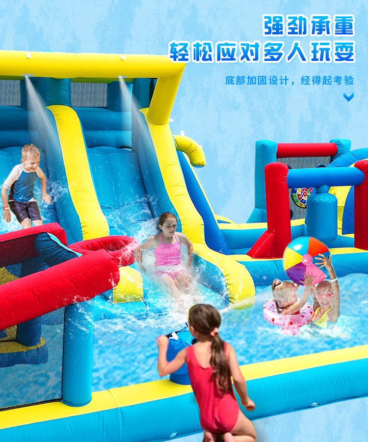 | Especificaciones | 4.4x3.6x2.04m parque deslizante de dos vías, 6.23 * 4.76 * 2.26m deslizante multifuncional, 4.6x3x2.2336m trampolín doble, 4.4x4x2.7m trampolín tiranosaurio, 3.66 * 3 * 2.97m delfín doble (centro), 3.6 * 3 * 2.25m cocodrilo, 4.22 * 2.24 * 3.88m tiburón de dos vías naranja, 4.9x2.16x2.07m deslizante arco iris, 3.3 * 3.2 * 1.9m tobogan de agua de color sólido, 3.8 * 4 * 2.82m tiburón azul de dos vías, 3.9 * 3.5 * 2.8m flamenco de dos vías, 4.2 * 2.5 * 2.3m mono, 2.16 * 1.55 * 1.7m caramelo (grande), 4.54 * 2.19 * 1.95m tobogan de piscina redonda, 2.43 * 2 * 1.8m tema de carreras, 3.67 * 2 * 2.15m tema de globo de aire, 2.16 * 1.55 * 1.7m dulces (pequeños), 3.7 * 2 * 2.23m dobles delfines (pequeños), 4.25 * 1.85 * 1.8m tiburón azul pequeño / defectos de teñido, 3.6 * 3 * 2.85m defectos de teñido de cangrejo, 2.85x2.5x1.65m defectos de teñido de bola ordinaria |