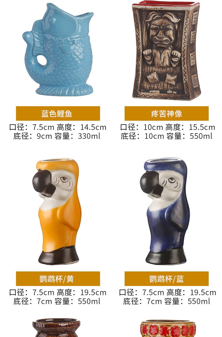 | Color | Aimal, taza de elefante blanco, ídolo tribal, jefe tribal, nariz verde, nariz marrón, ojos grandes, boca grande, estupefacto, maestro oriental, unicornio, guardias de escudo, estupefacto, cerdo rosa, estupefacto, taza de esqueleto pirata, taza de bola pirata, taza de esqueleto negro, pez lámpara roja, ojos rojos, estupefacto del rey esqueleto, cabeza de mono, corolla de flores, guiraldas de flores, dolfin amarillo, coco amarillo, cangrejo visitante, caballero general, modelado zombie, estupefacto, Isla de los Jedi, oso encantador, estatuo esquelético, cráneo, muñeca esquelética, taza de elefante azul, dick verde, ídolo verde de Mikey, ídolo marrón de Mikey, búho, ídolo búho, jefe maorí, ídolo de la bruja, pa-avin, taza de póquer, samurai japonés, samif, ídolo de cuerno de cabra, cabeza de león, estatuo negro, estatuo verde, flor de sol, ídolo de dolor, ídolo travies, alienígenas, clérigos de las tierras occidentales, tiburones blancos, festival de bambú, primate, mago simio, Taza de papagaio azul, taza de papagaio amarillo, taza de coco, figura de ojo de vórtice, pato amarillo, taza de carpa azul |