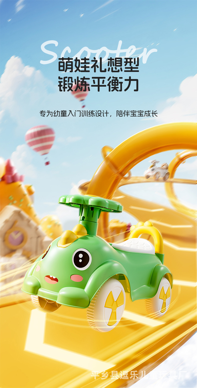Niños andadores deslizantes 1-3 años, niños y niñas, sin pedales, anti-vuelco, polea de cuatro ruedas, torsión, coche al por mayor