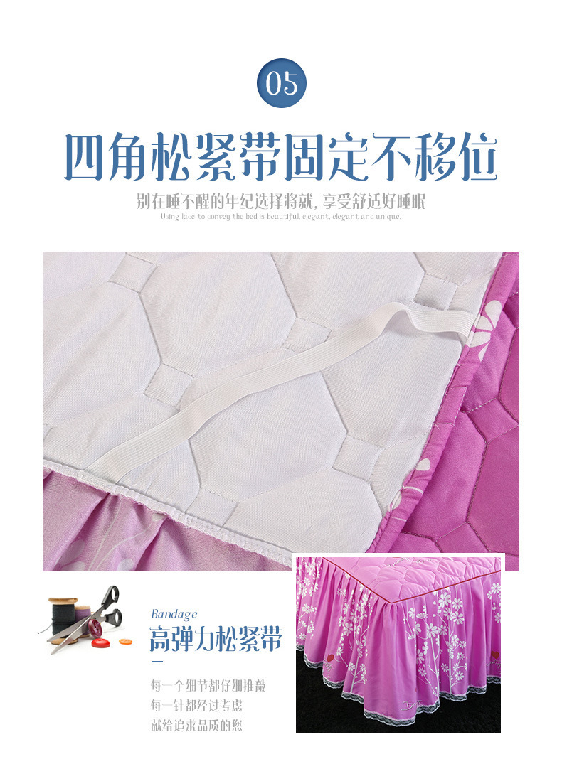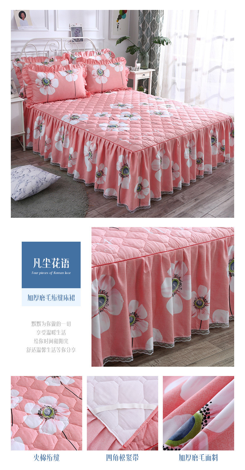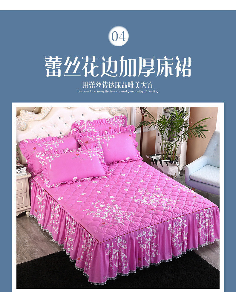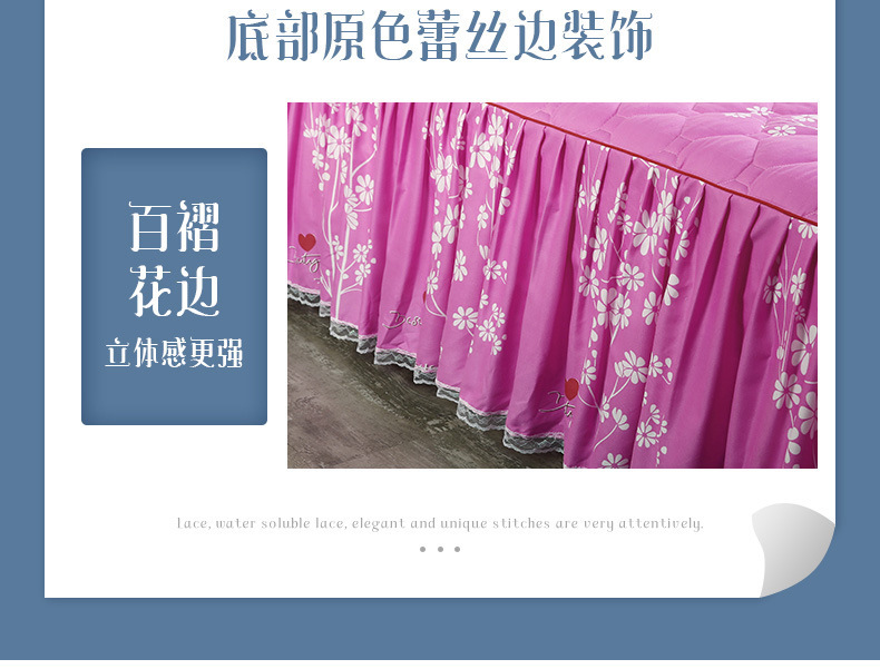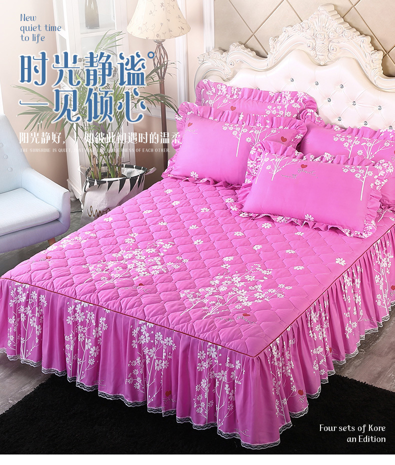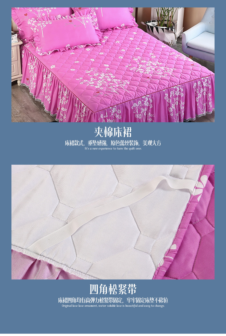 | Especificaciones de tamaño | 120 * 200cm una sola pieza de falda de cama intercalada, 150 * 200cm una sola pieza de falda de cama intercalada, 180 * 200cm una sola pieza de falda de cama intercalada, 180 * 220cm una sola pieza de falda de cama intercalada, 200 * 220cm una sola pieza de falda de cama intercalada, funda de almohada 48cm * 74cm / par |