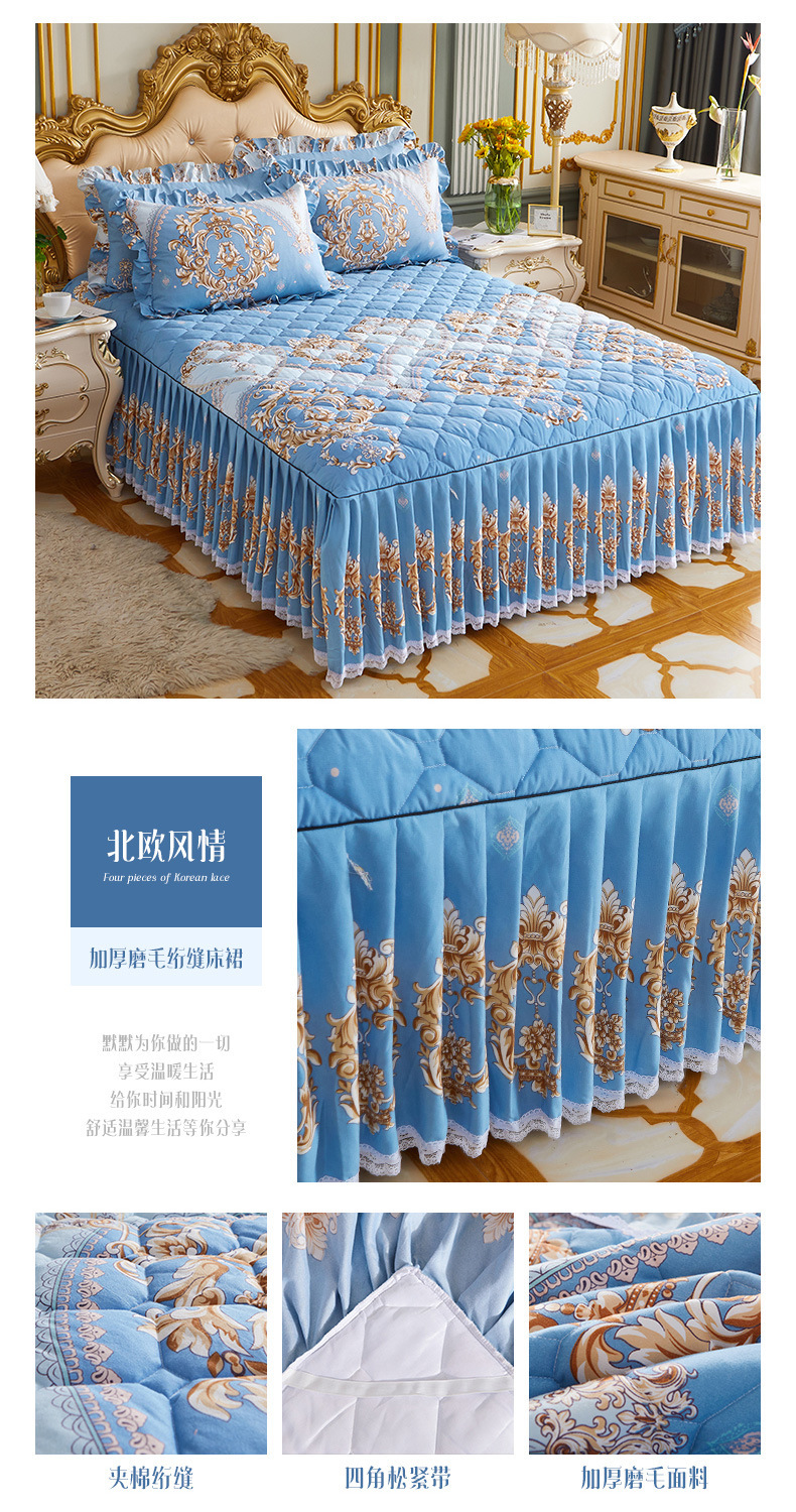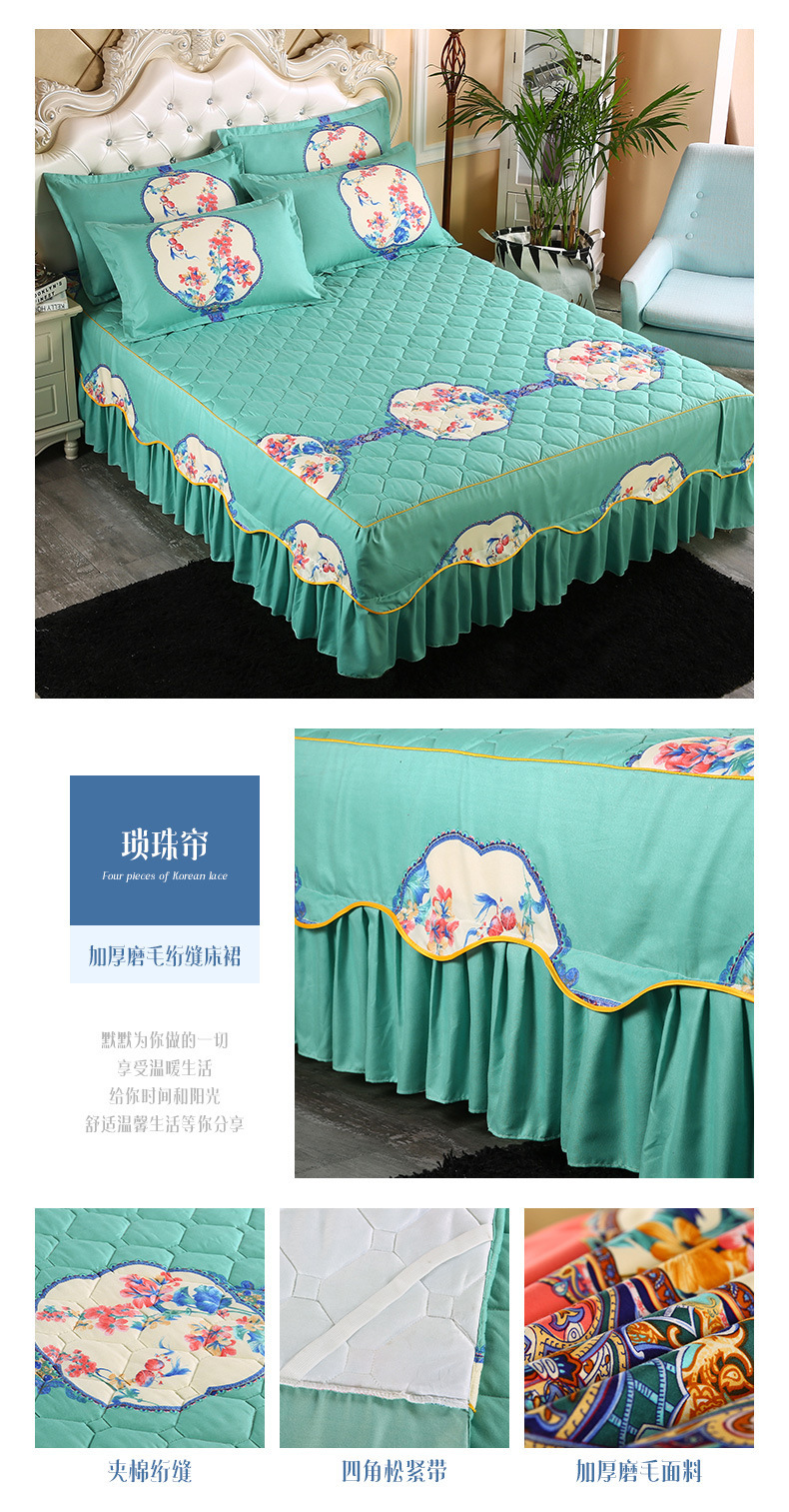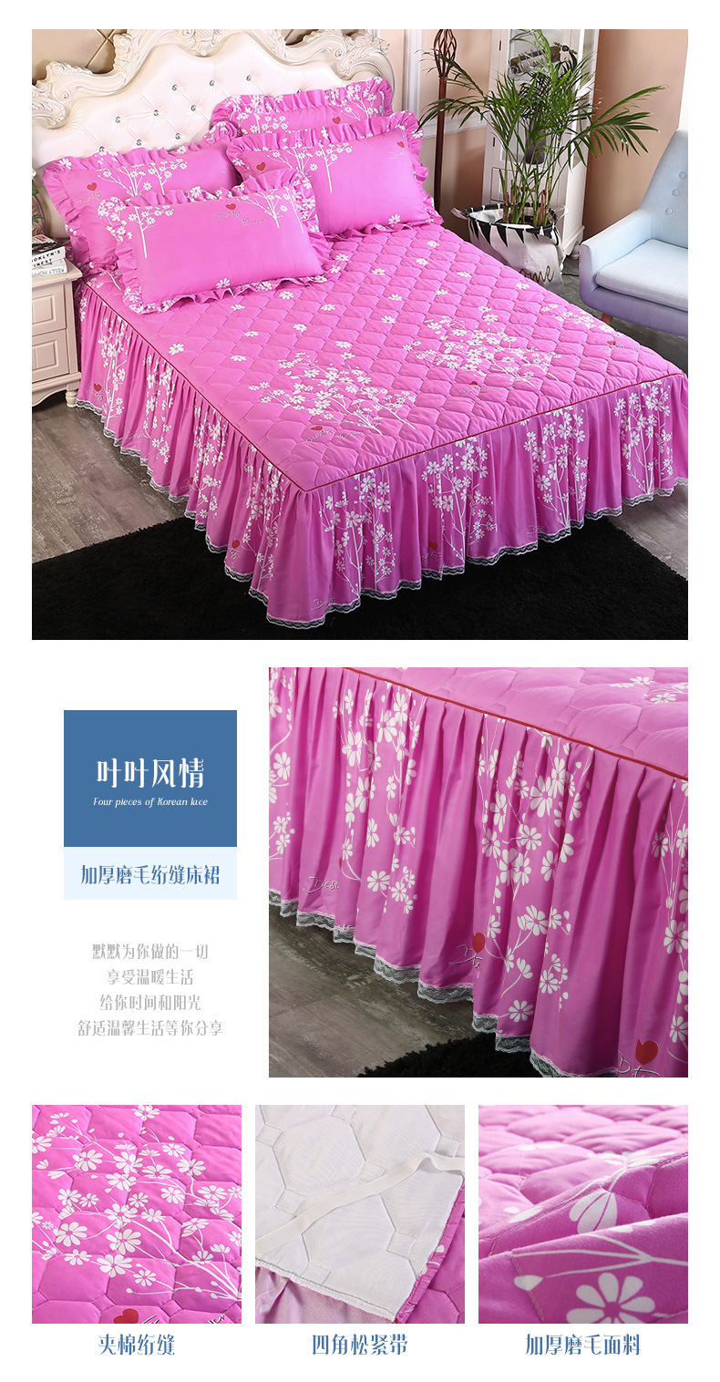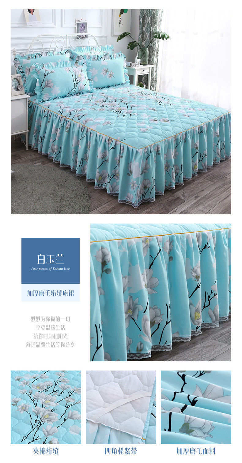 | Especificaciones de tamaño | 120 * 200cm una sola pieza de falda de cama intercalada, 150 * 200cm una sola pieza de falda de cama intercalada, 180 * 200cm una sola pieza de falda de cama intercalada, 180 * 220cm una sola pieza de falda de cama intercalada, 200 * 220cm una sola pieza de falda de cama intercalada, funda de almohada 48cm * 74cm / par |