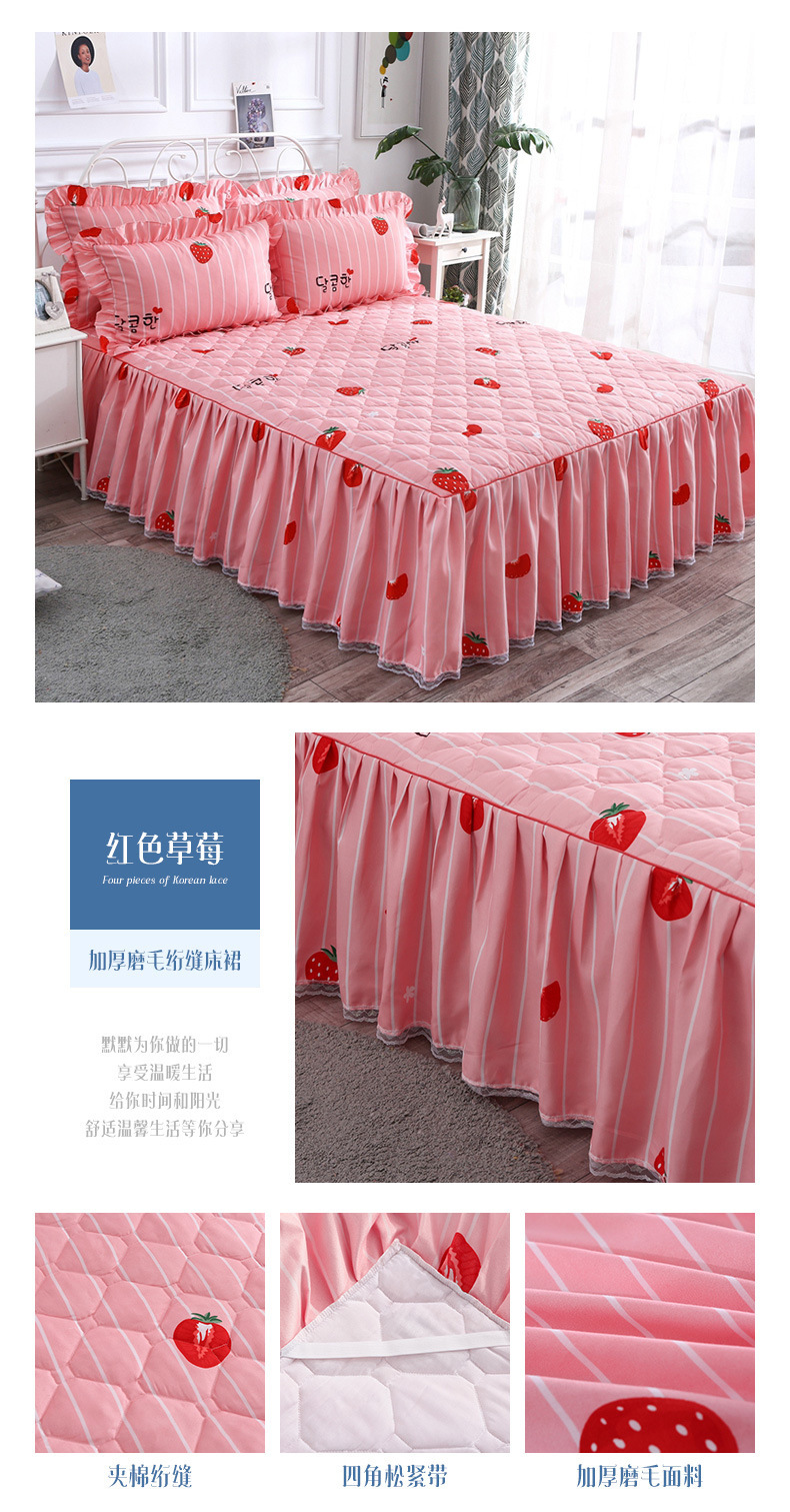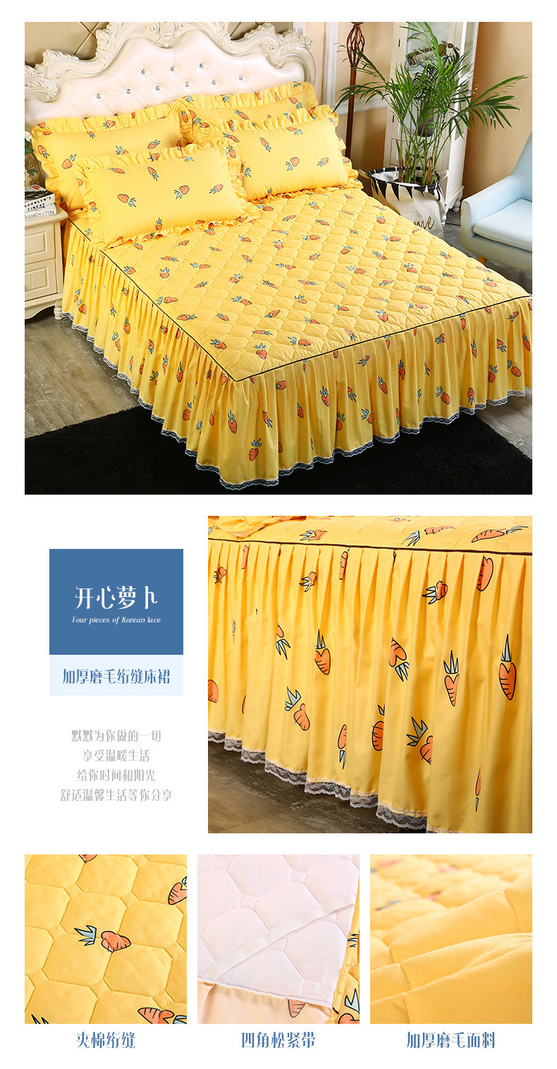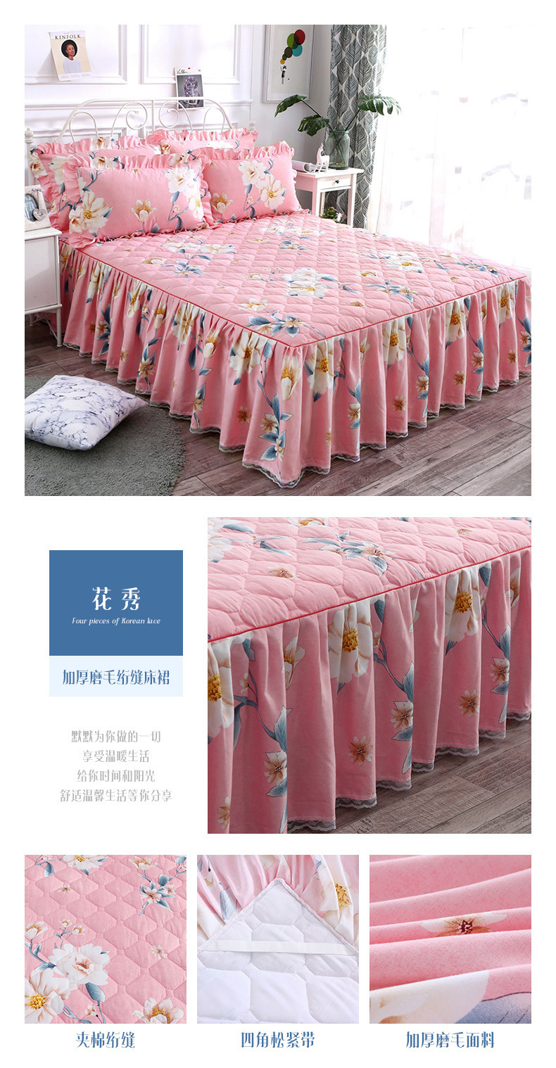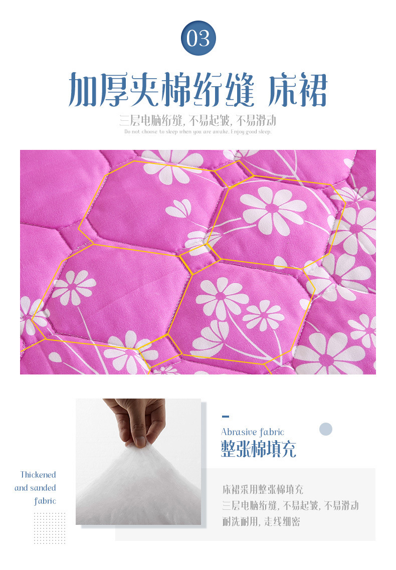 | Especificaciones de tamaño | 120 * 200cm una sola pieza de falda de cama intercalada, 150 * 200cm una sola pieza de falda de cama intercalada, 180 * 200cm una sola pieza de falda de cama intercalada, 180 * 220cm una sola pieza de falda de cama intercalada, 200 * 220cm una sola pieza de falda de cama intercalada, funda de almohada 48cm * 74cm / par |