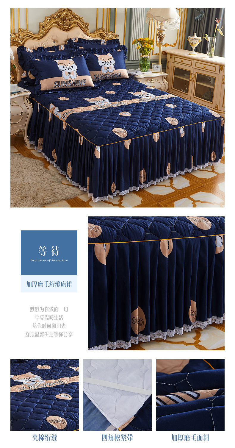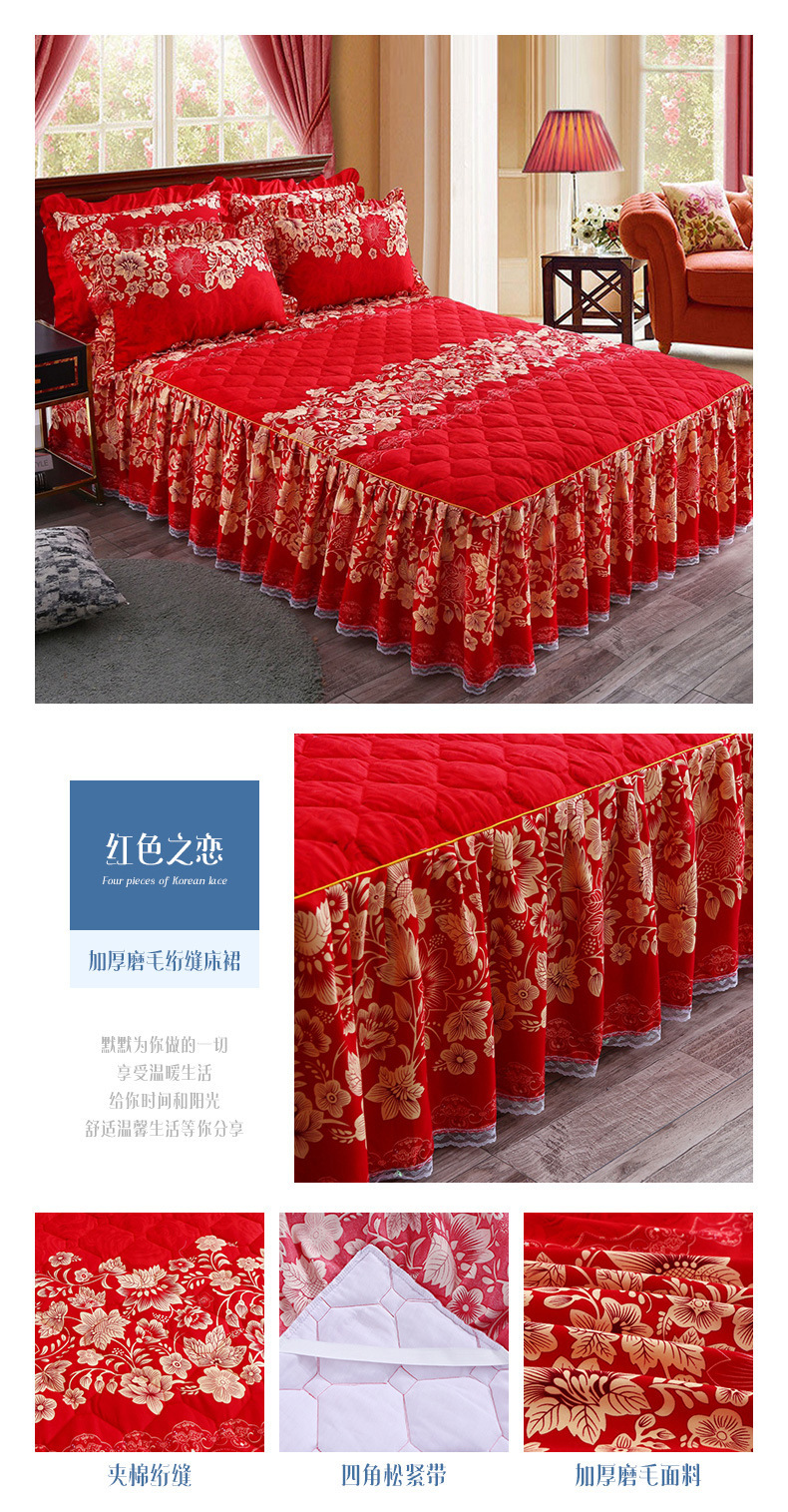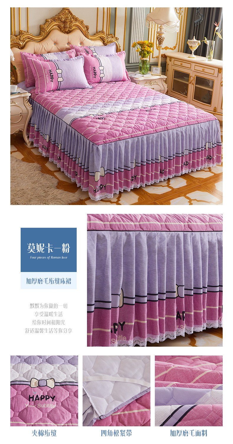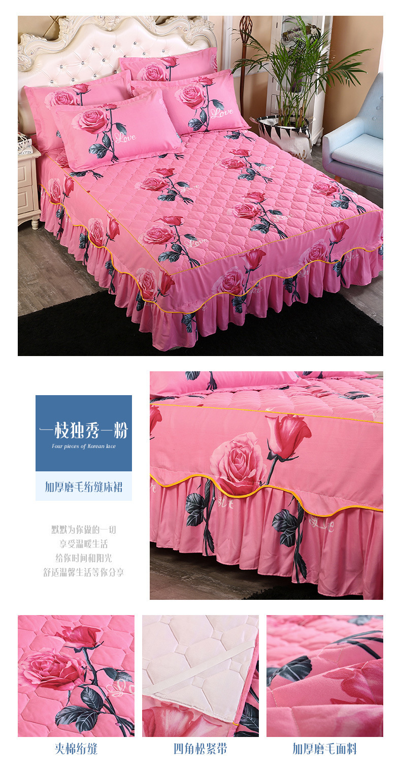 | Especificaciones de tamaño | 120 * 200cm una sola pieza de falda de cama intercalada, 150 * 200cm una sola pieza de falda de cama intercalada, 180 * 200cm una sola pieza de falda de cama intercalada, 180 * 220cm una sola pieza de falda de cama intercalada, 200 * 220cm una sola pieza de falda de cama intercalada, funda de almohada 48cm * 74cm / par |