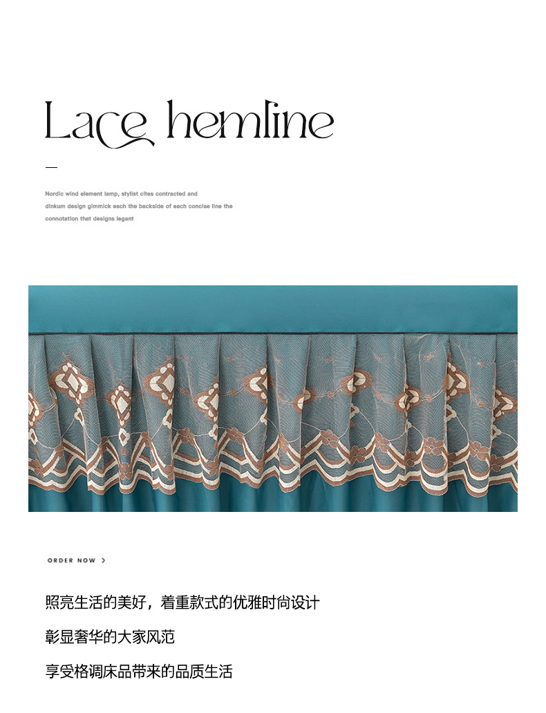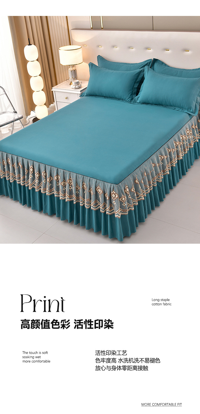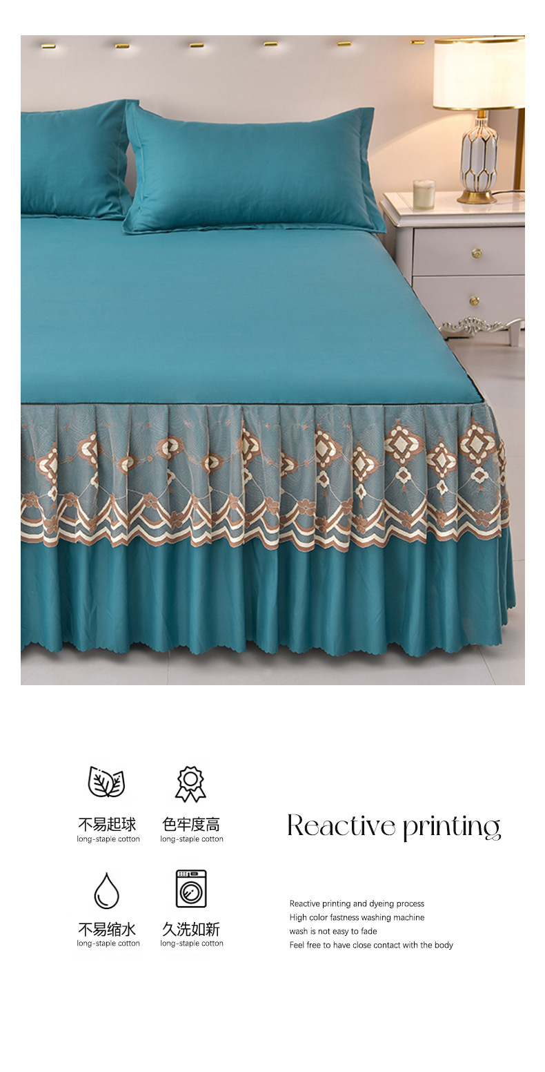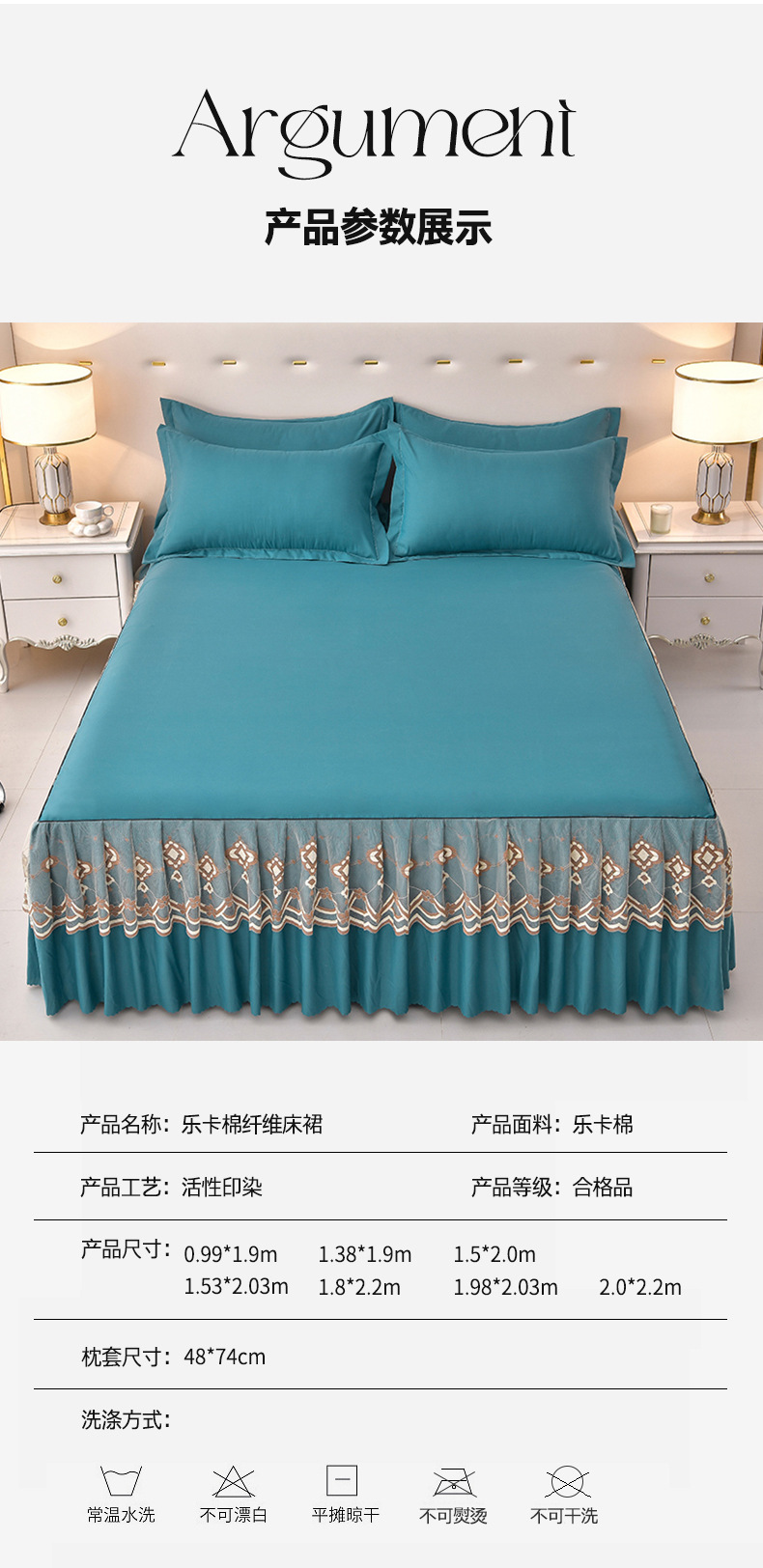 | Especificaciones de tamaño | una sola falda de cama de 0.99 * 1.9m, una sola falda de cama de 1.38 * 1.9m, una sola falda de cama de 1.5 * 2.0m, una sola falda de cama de 1.53 * 2.03m, una sola falda de cama de 1.8 * 2.0m, una sola falda de cama de 1.98 * 2.03m, una sola falda de cama de 2.0 * 2.2m, un conjunto de tres piezas de falda de cama de 0.99 * 1.9m, un conjunto de tres piezas de falda de cama de 1.38 * 1.9m, un conjunto de tres piezas de falda de cama de 1.5 * 2.0m, un conjunto de tres piezas de falda de cama de 1.53 * 2.03m, 1.8 * 2.0m, 1.98 * 2.03m, 2.0 * 2.2m, un par de cubiertas de almohada |