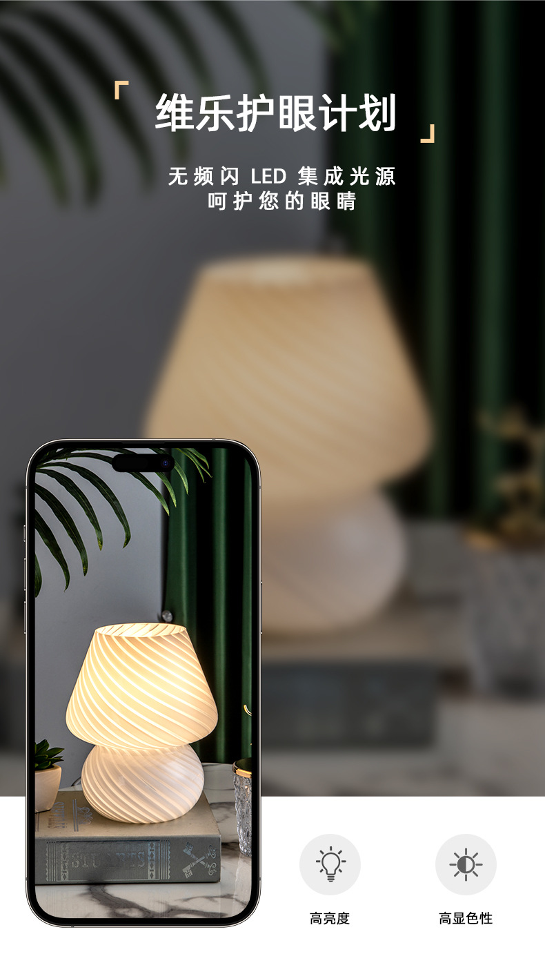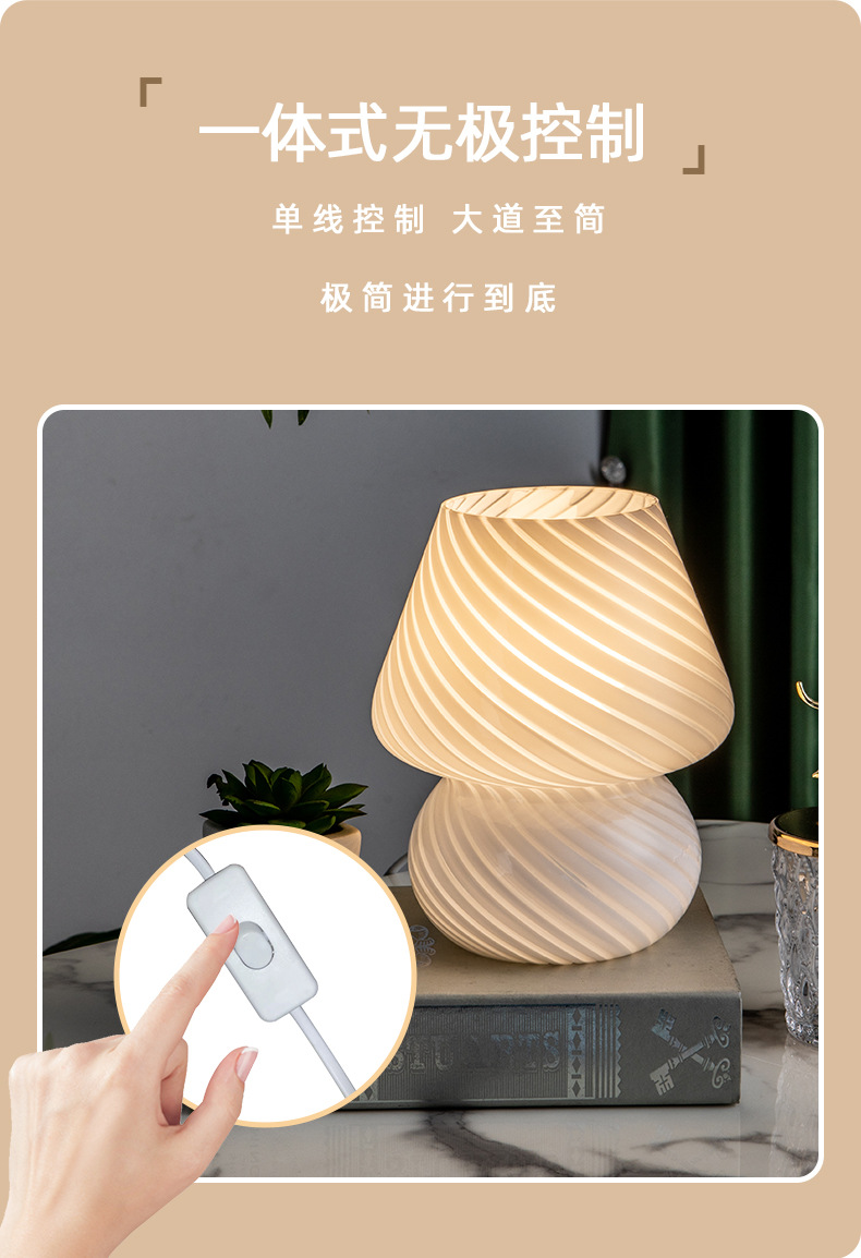 | Elementos populares | Lámpara de mesa tipo hongo, de cristal. |