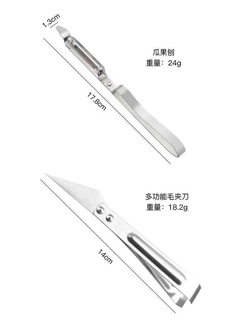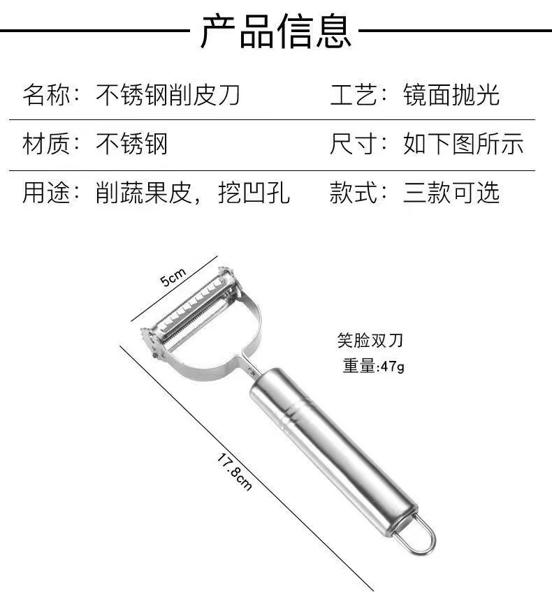 | Especificaciones | Cuchillo de peeling de tres piezas - paquete desnudo, cuchillo de peeling de tres piezas - paquete de bolsa OPP, raspador de rosas sonrientes, depilador, cuchillo de peeling |