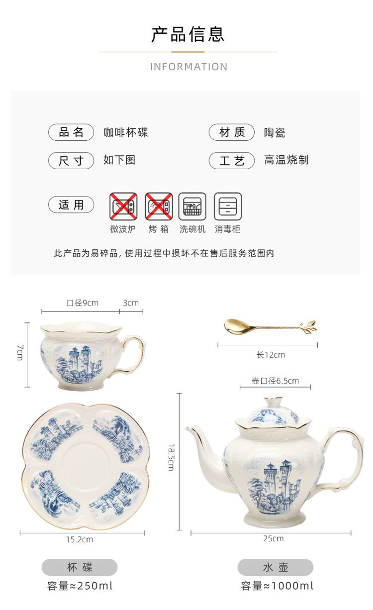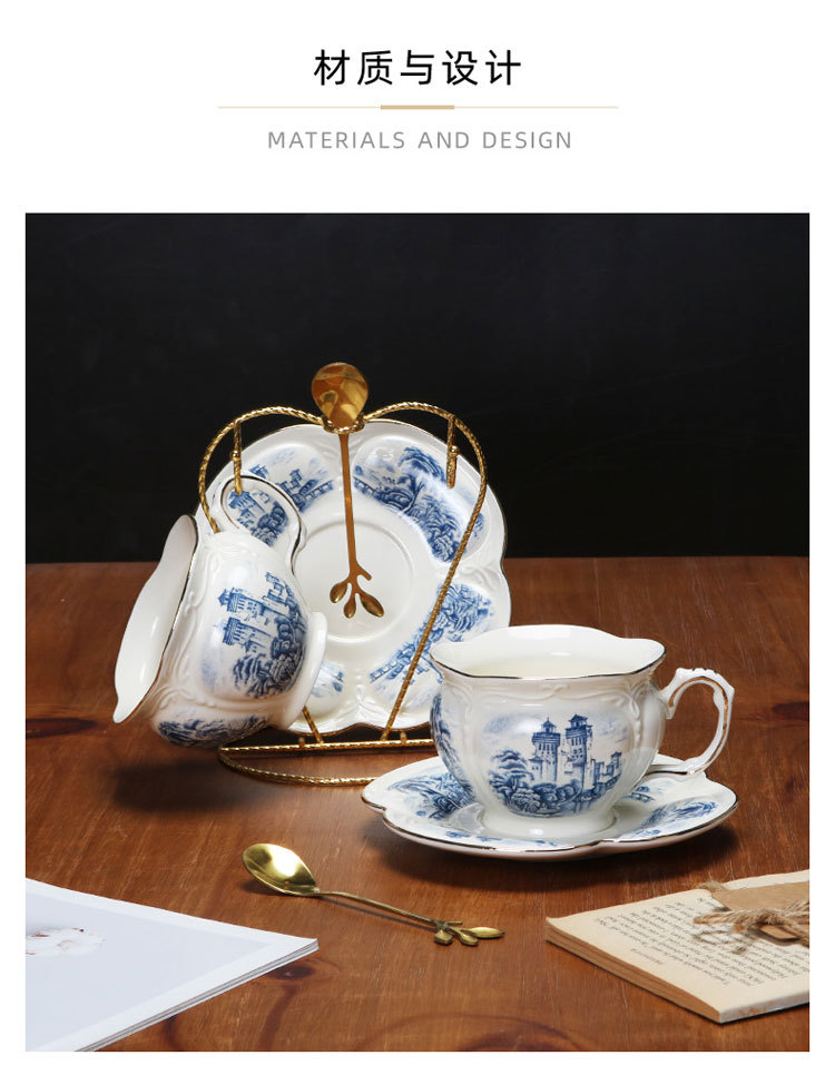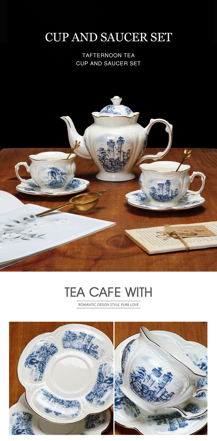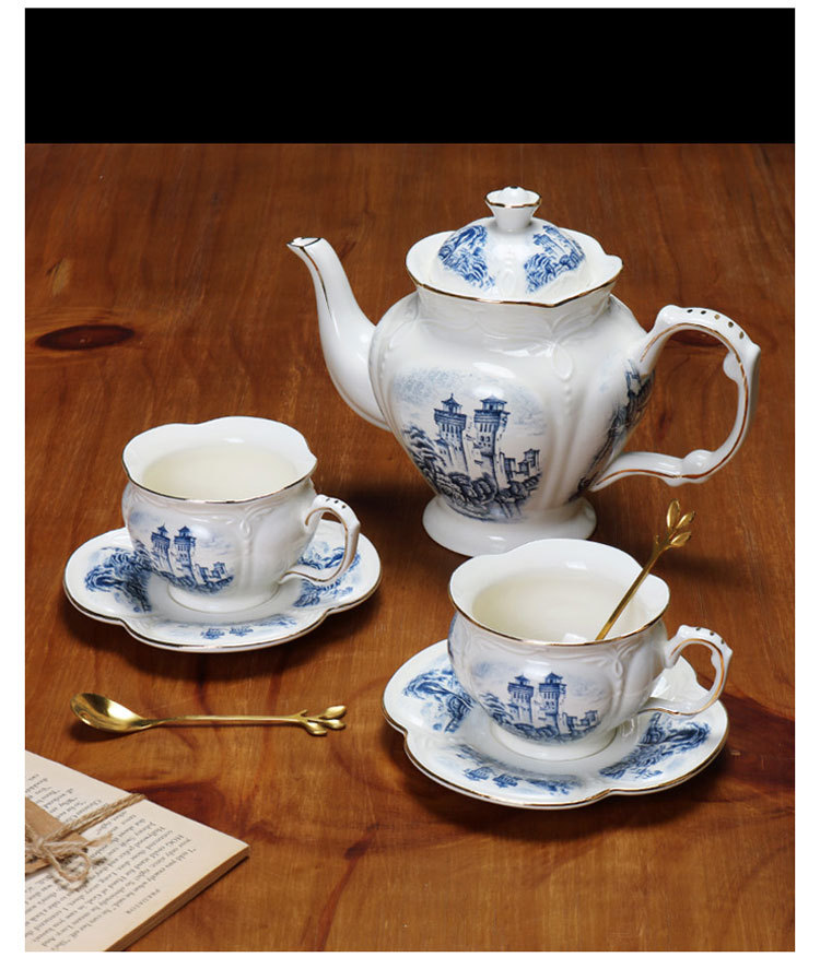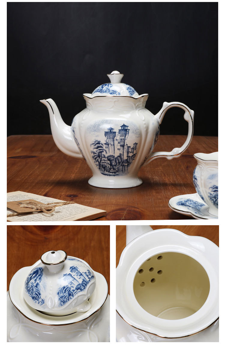 Jingdezhen cerámica taza de café plato set tetera de oficina azul porcelana de agua de cerámica tetera de aceite de tetera doméstica tetera