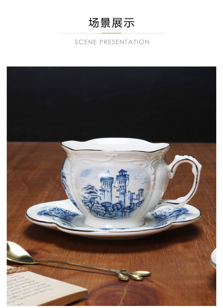 Tazas de café de cerámica de estilo medieval iris platos de latte taza de flores de la tarde taza de menú retro taza caja de regalo