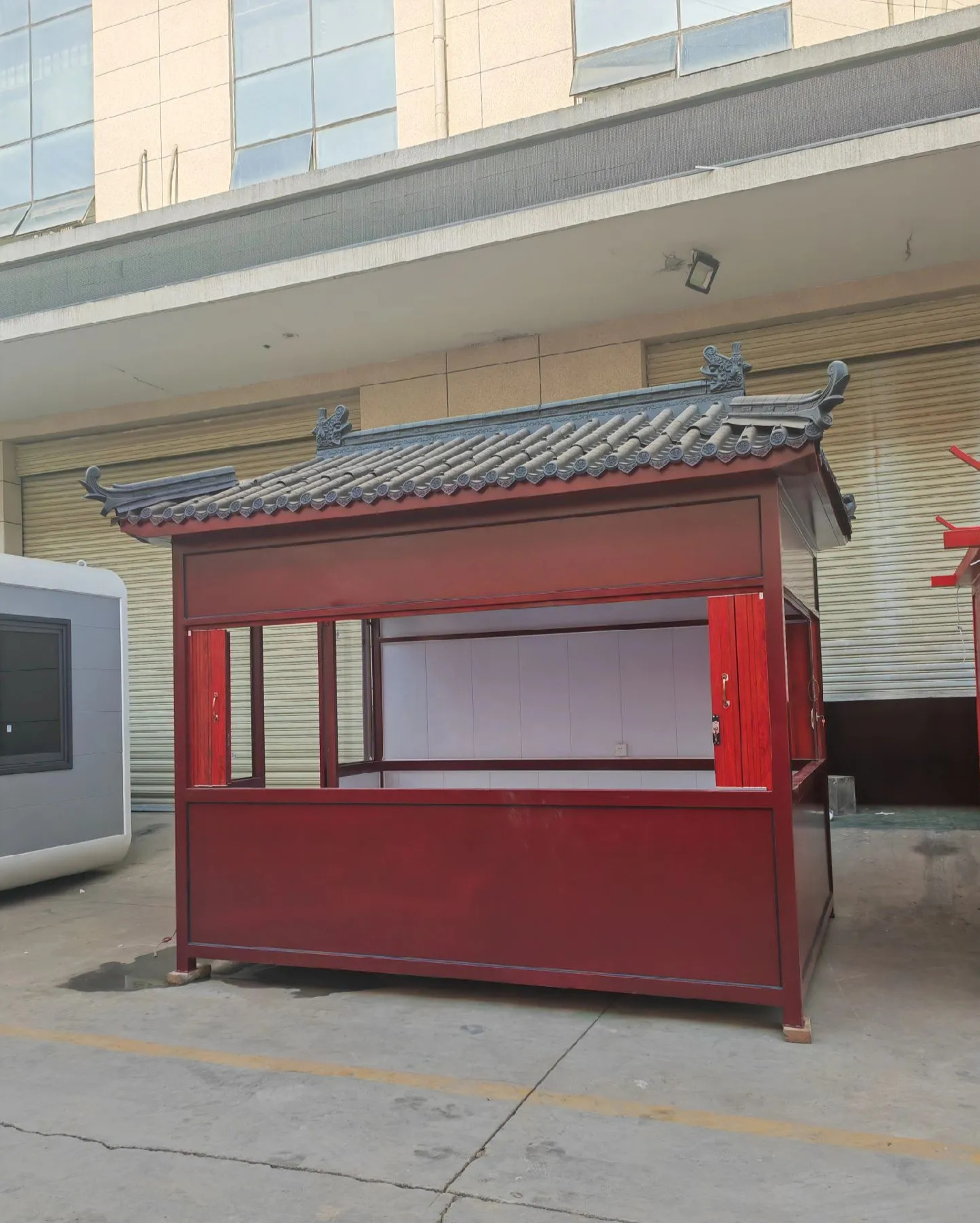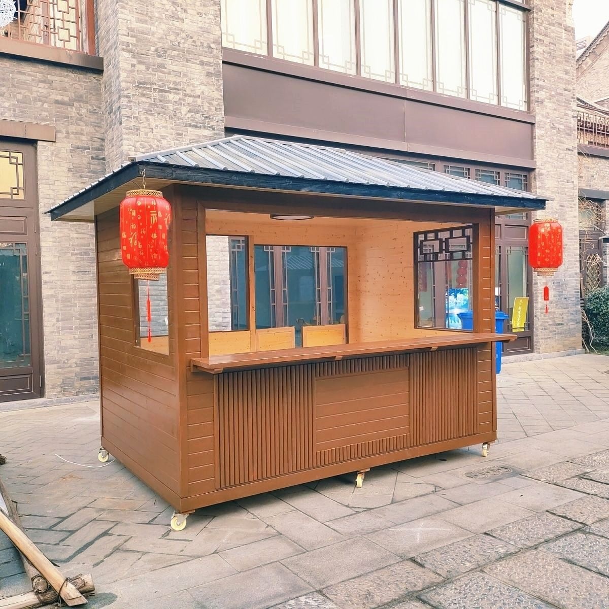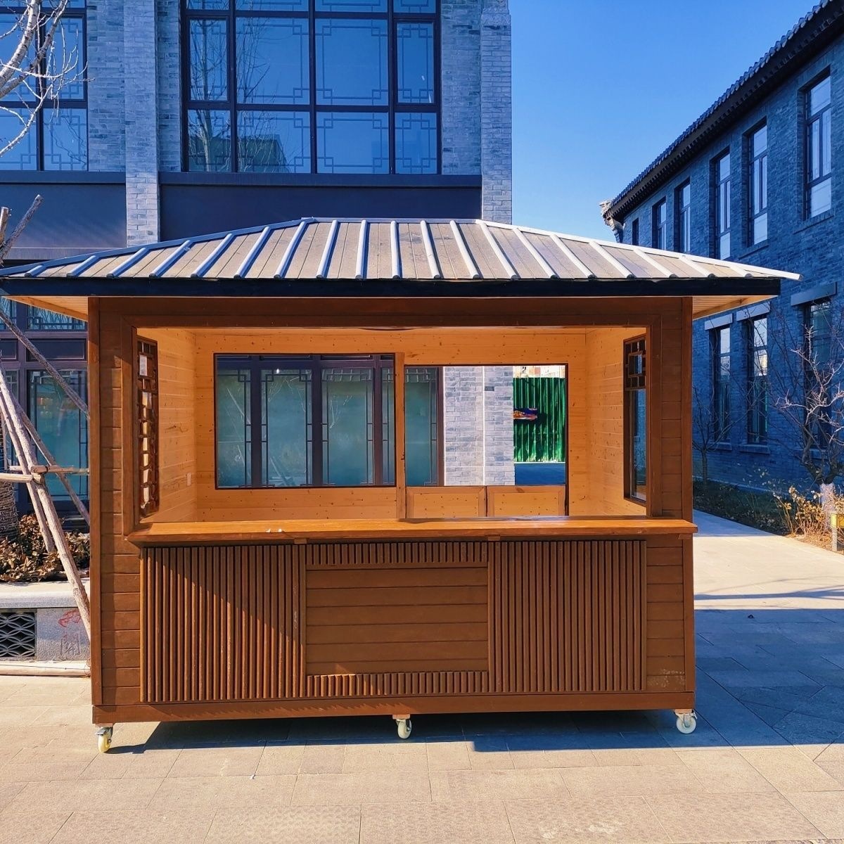 Área escénica al aire libre anti-corrosivo chalet de madera quiosco móvil popularidad en línea antiguo parque quiosco de venta de boletos bocadillos