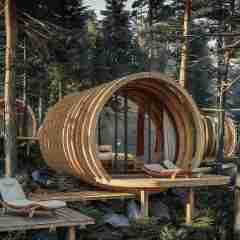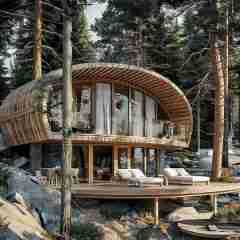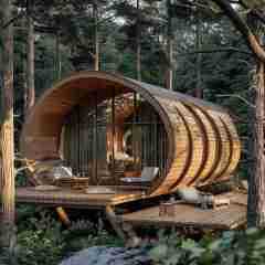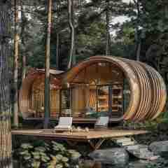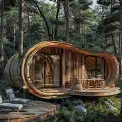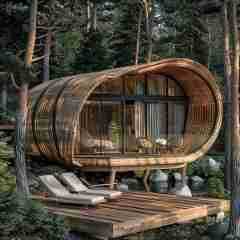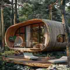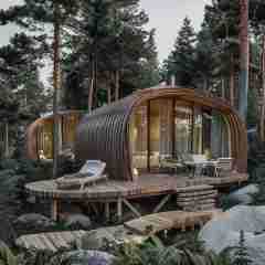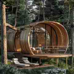 Casa de madera de modelado móvil al aire libre Bosque idílico Villa de lujo de vacaciones punto escénico de tarjetas de perforación en línea característica casa de madera