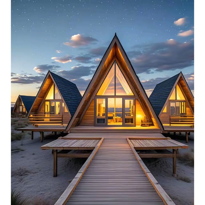 Características al aire libre de camping de lujo salvaje casa de madera triangular alojamiento residencial casa extraña pequeña casa móvil escénica casa de madera forestal