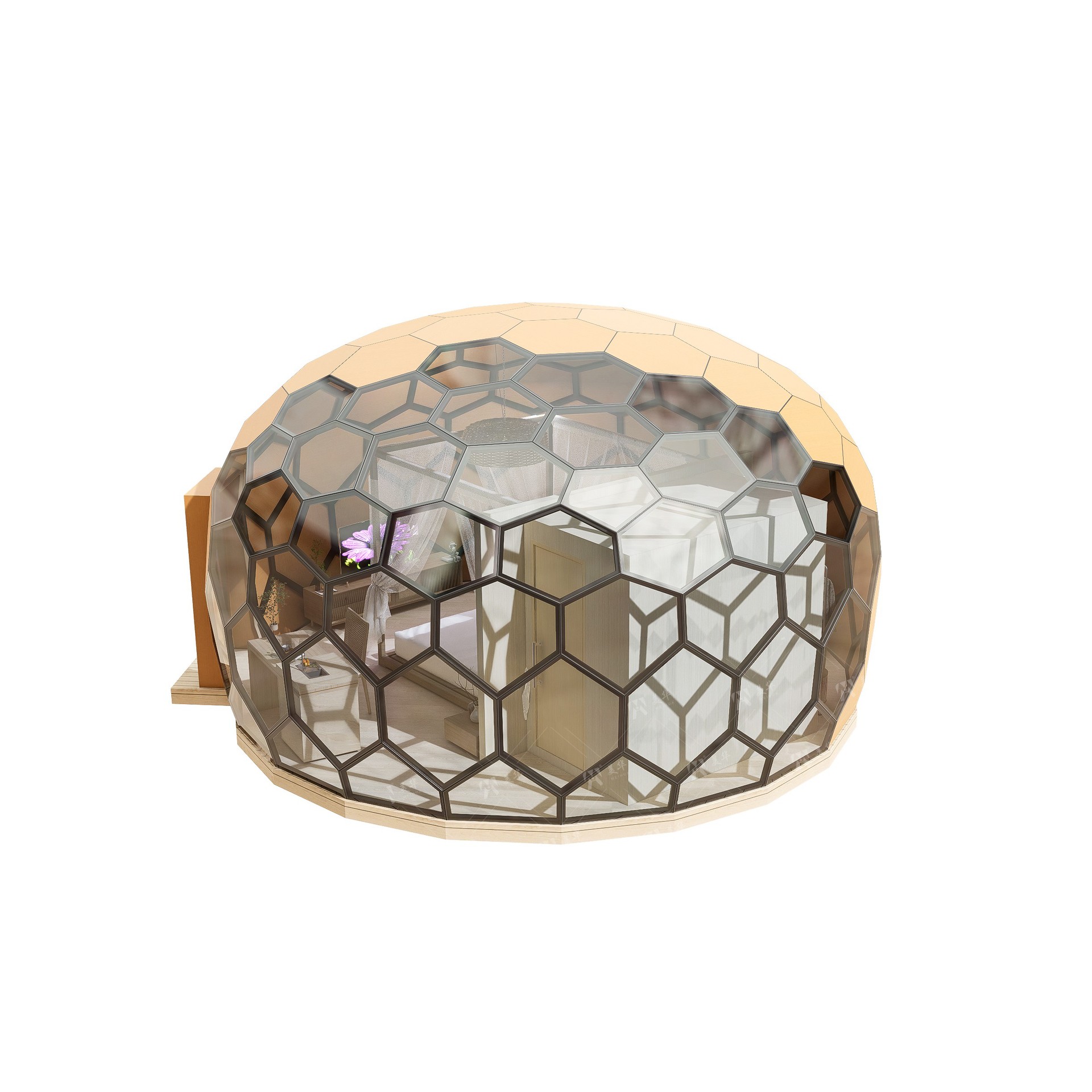 Exportado de Guangdong a Japón Actividades al aire libre Exposición a gran escala Carpa esférica de vidrio Uso permanente Restaurante Exposición Boda