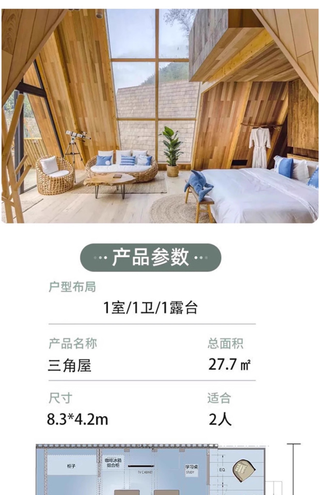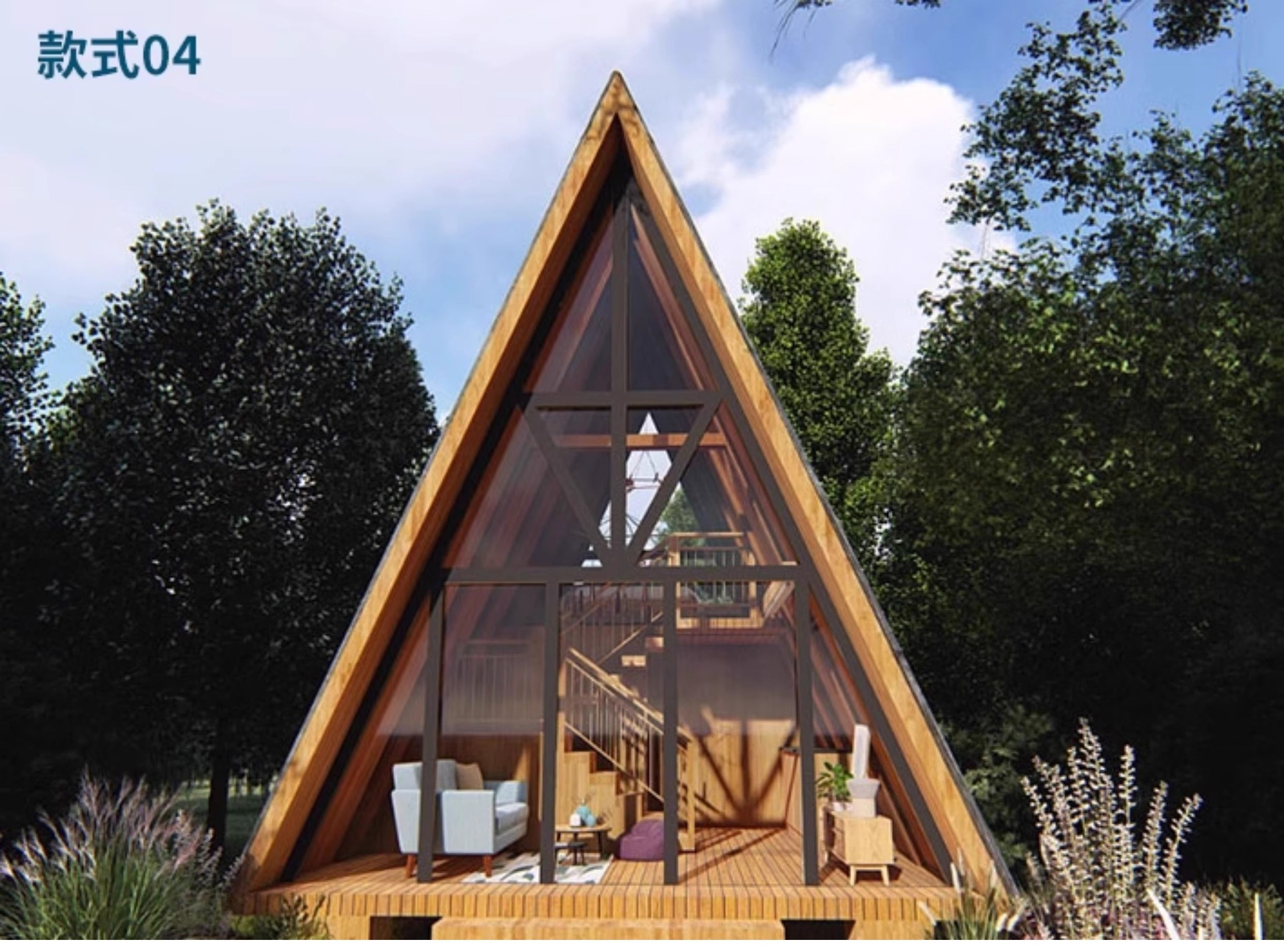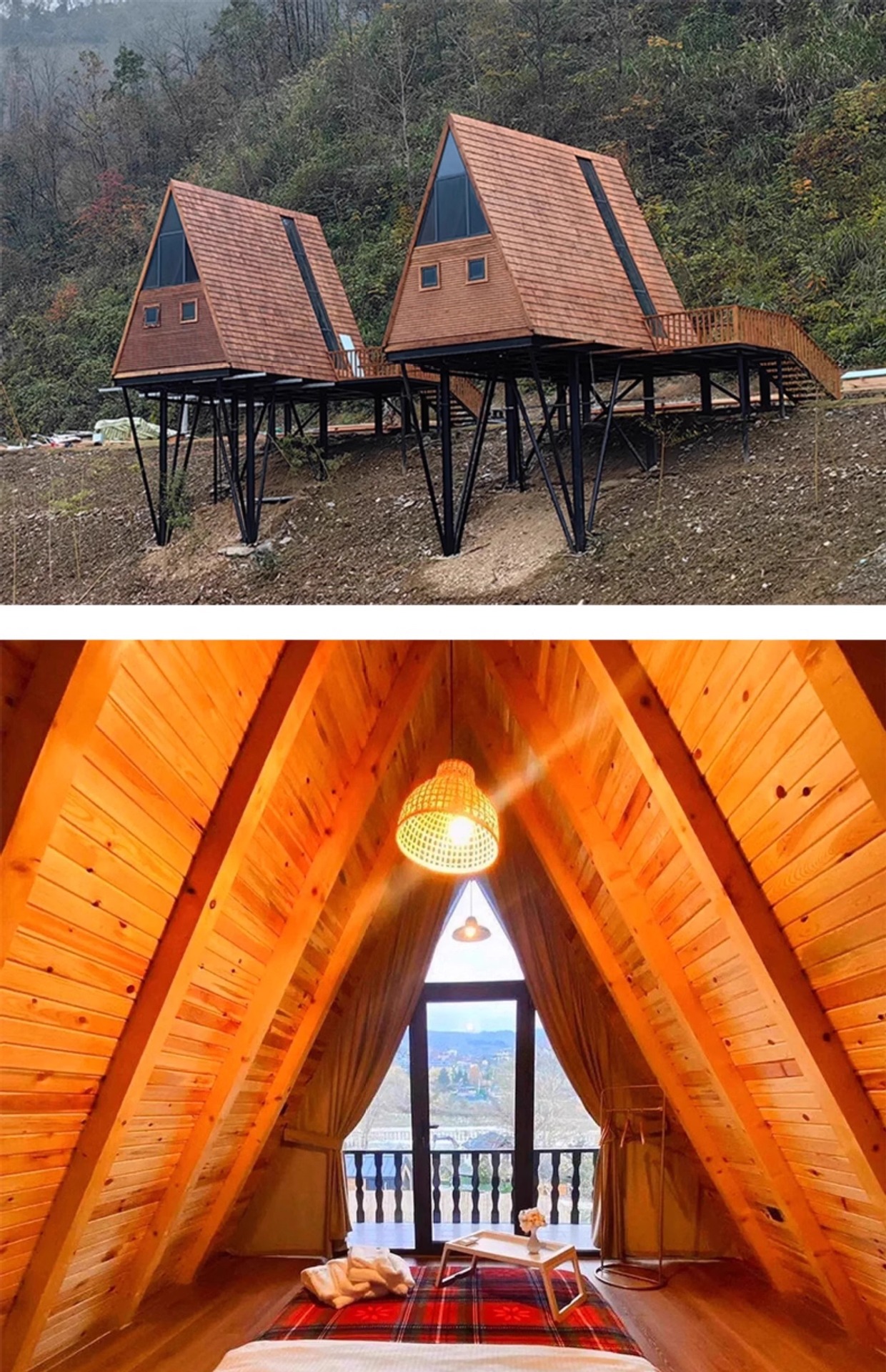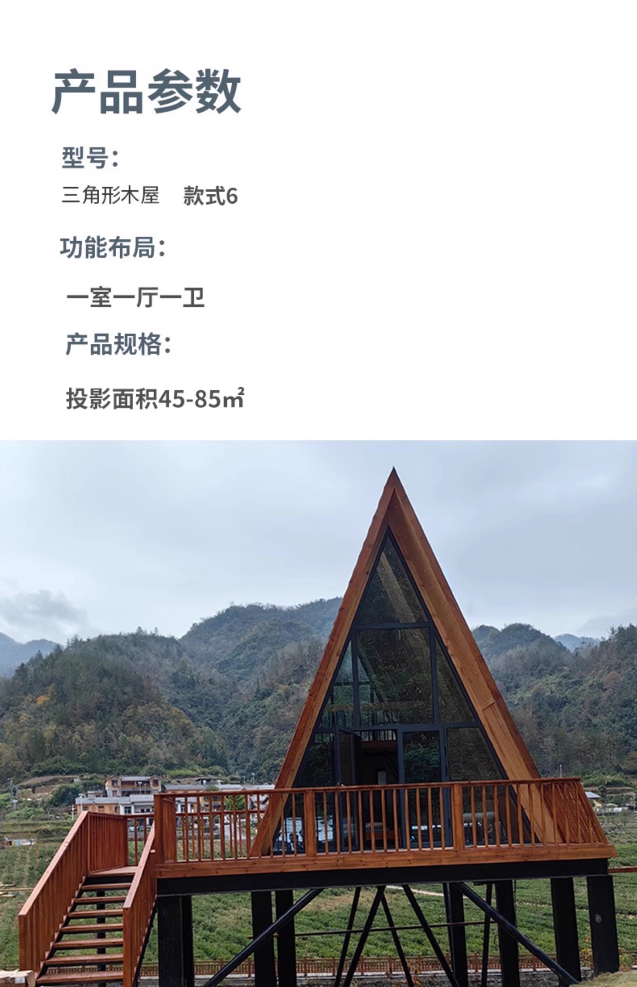 Casa de madera de celebridades de Internet Casa de madera triangular Camping al aire libre Casa de familia Paisaje Combinación Casa de madera Casa de campo Casa de madera anticorrosiva