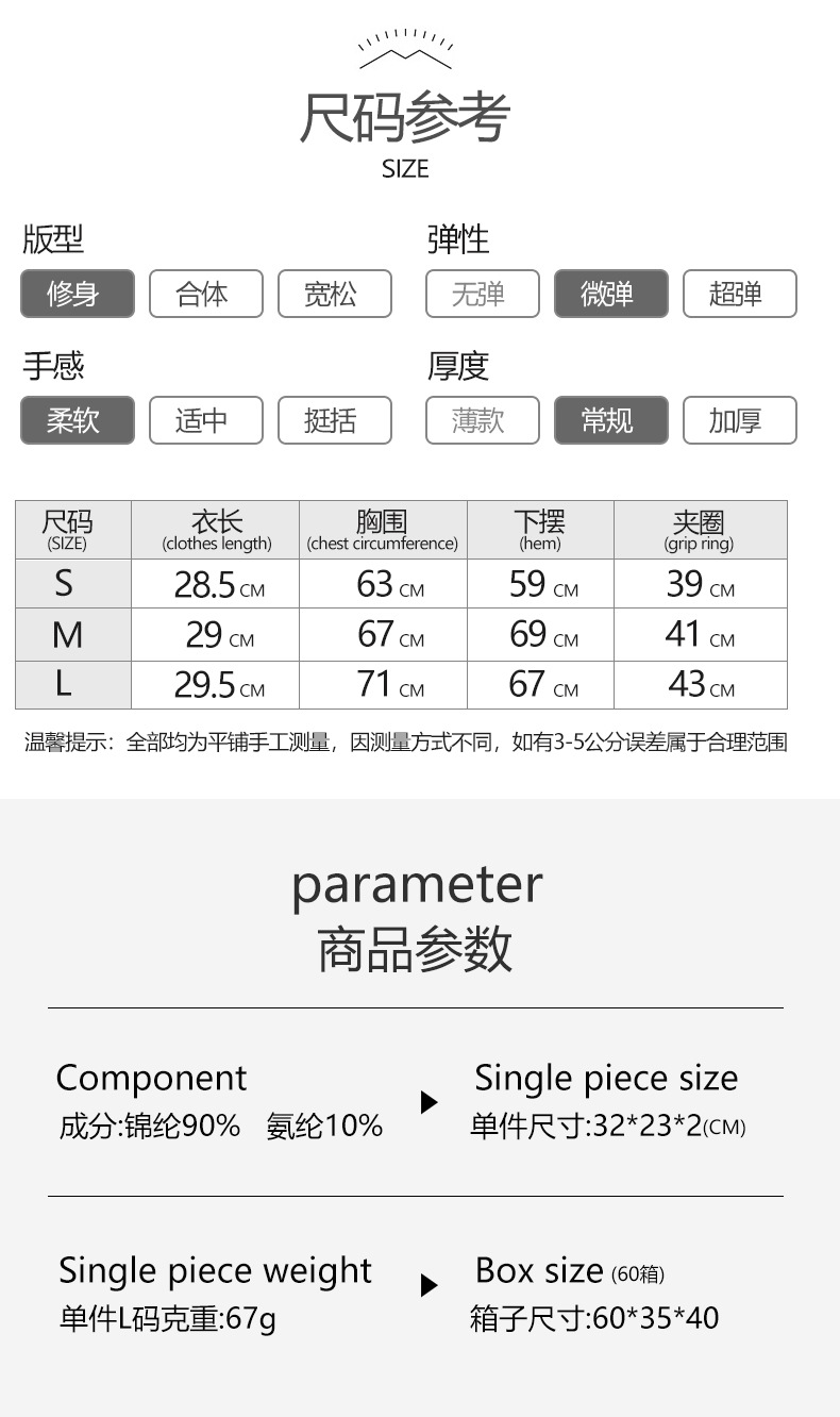 | Colores | Blanco (sin almohadilla para el pecho),[Nuevo color] rosa (sin almohadilla para el pecho),[Nuevo color] negro (sin almohadilla para el pecho),[Nuevo color] verde oscuro (sin almohadilla para el pecho),[Nuevo color] Azul marino (sin almohadilla para el pecho) |