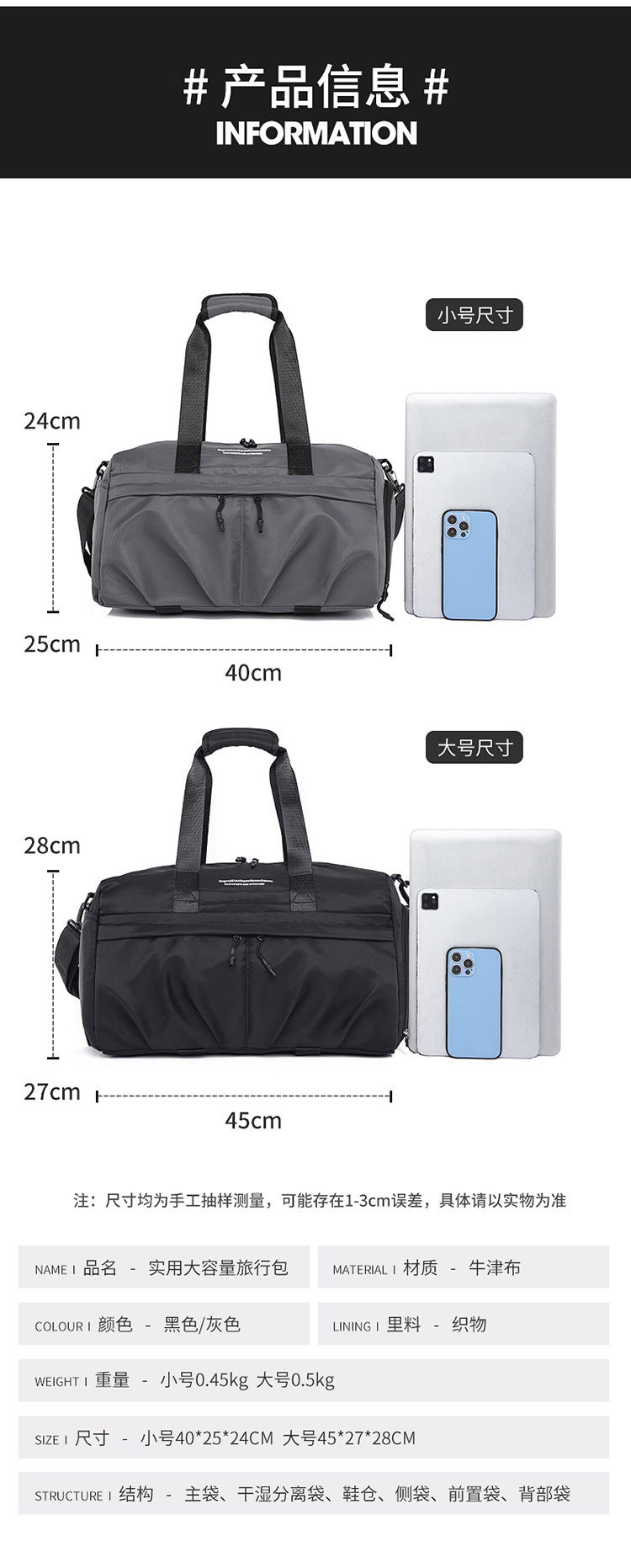 Seco-humedo separación bolsa de ejercicios bolsa de yoga bolsa de mano bolsa de viaje de mujer bolsa de natación a prueba de salpicaduras de gran capacidad