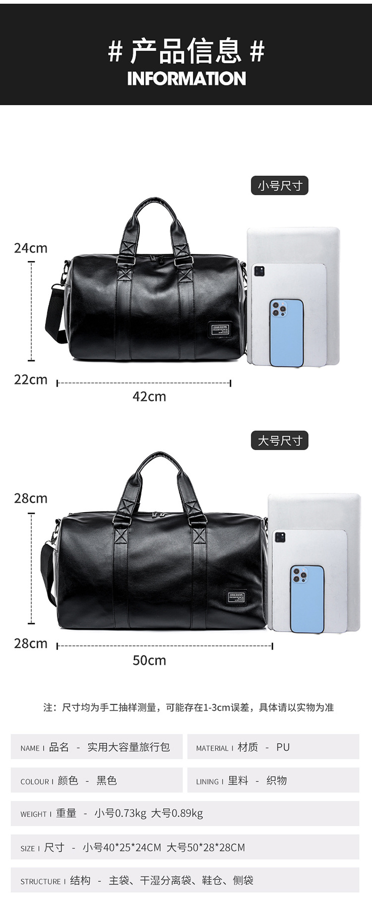 Viajes de negocios bolsas de gimnasio de corta distancia bolsas de cuero de gran capacidad bolsas de hombre mochilas bolsas de viaje bolsas de mano bolsas de viaje
