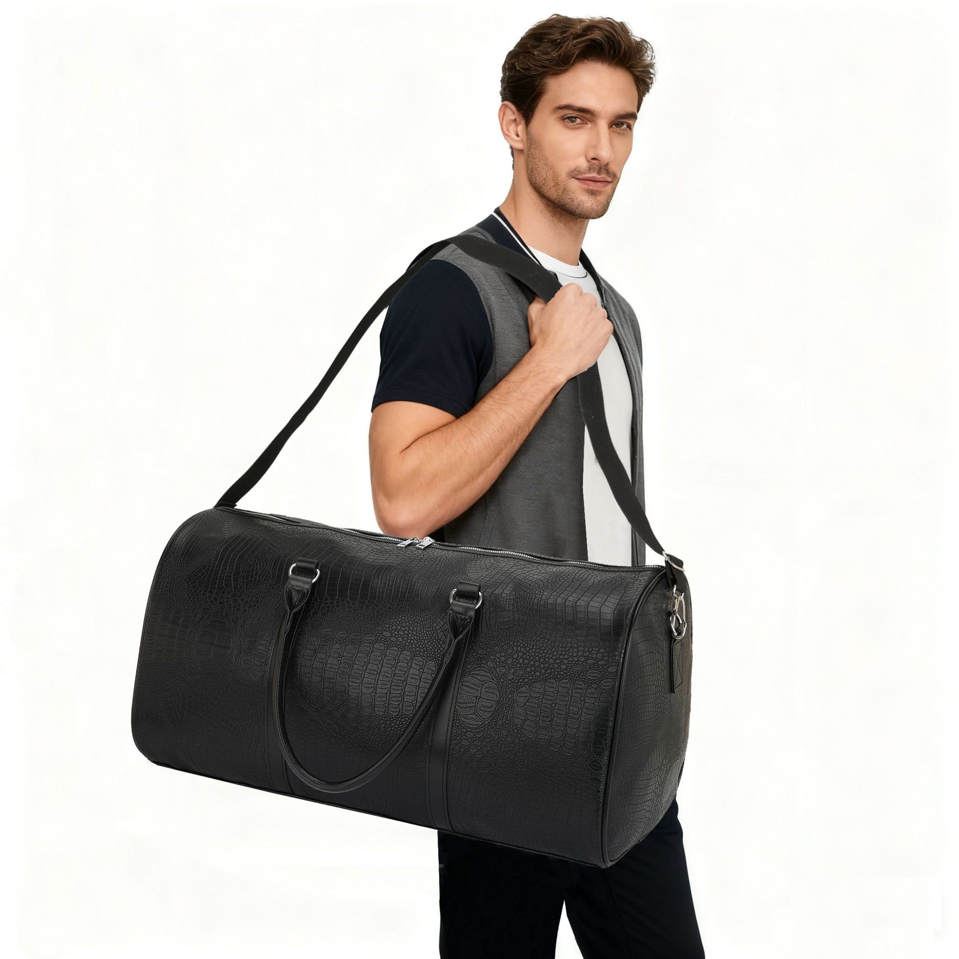 Bolsa de viaje portátil personalizada de comercio exterior transfronterizo bolsa deportiva al aire libre de corta distancia bolsa deportiva europea y americana cocodrilo bolsa