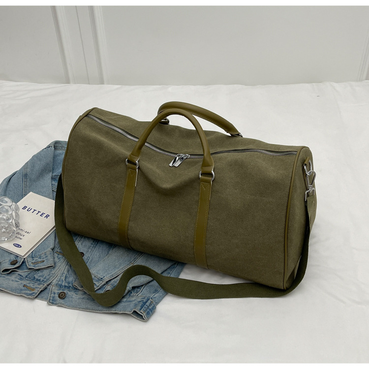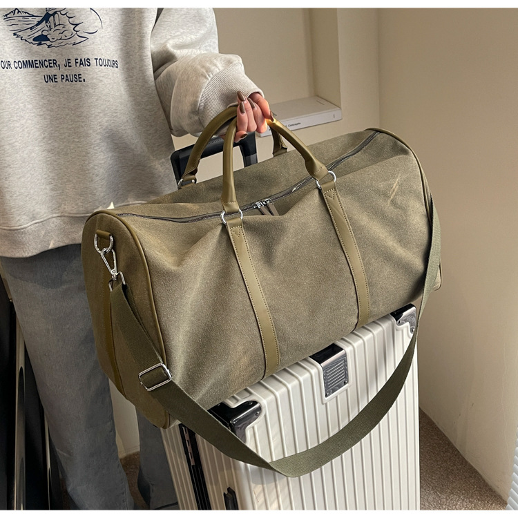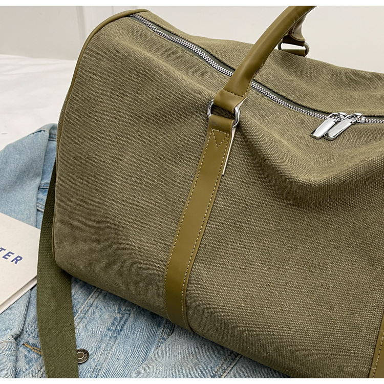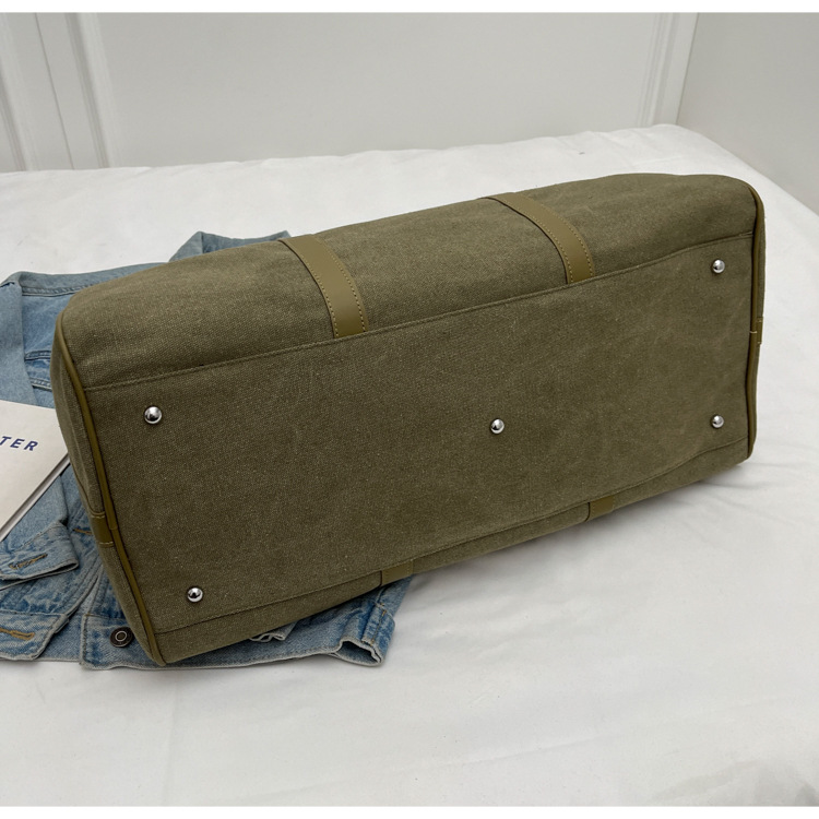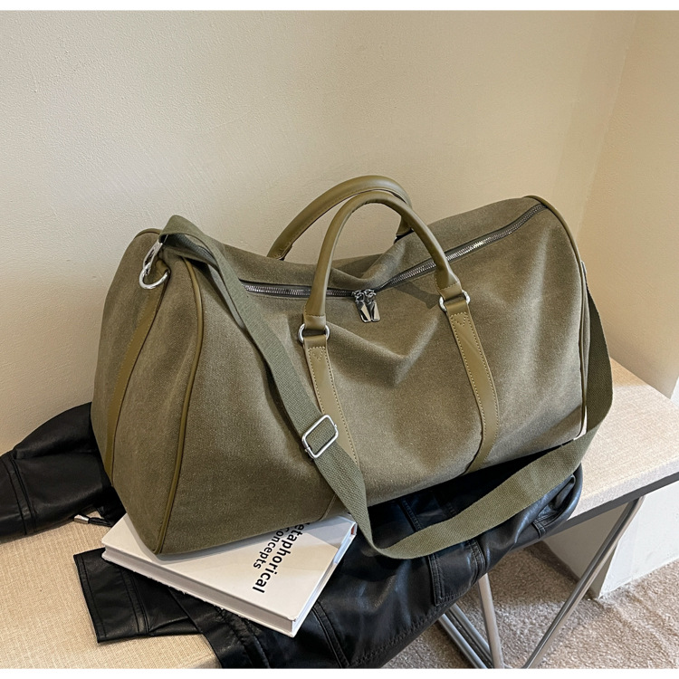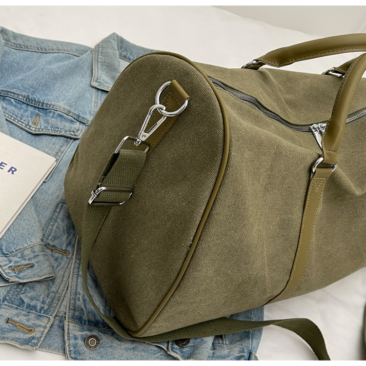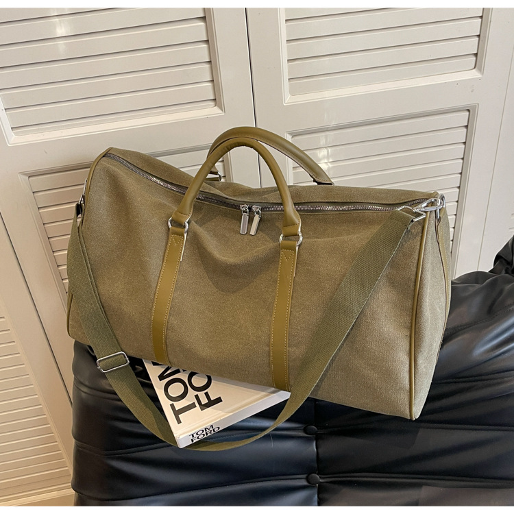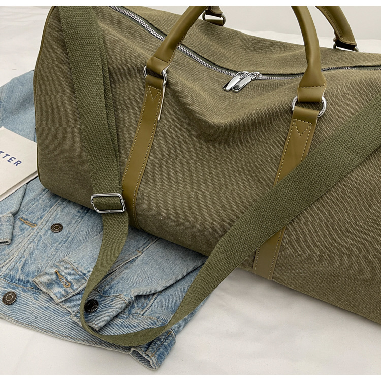 Nueva bolsa de equipaje, bolsa de lona fuerte, bolsa verde militar de gran capacidad para viajes cortos de hombro, bolsa de mano